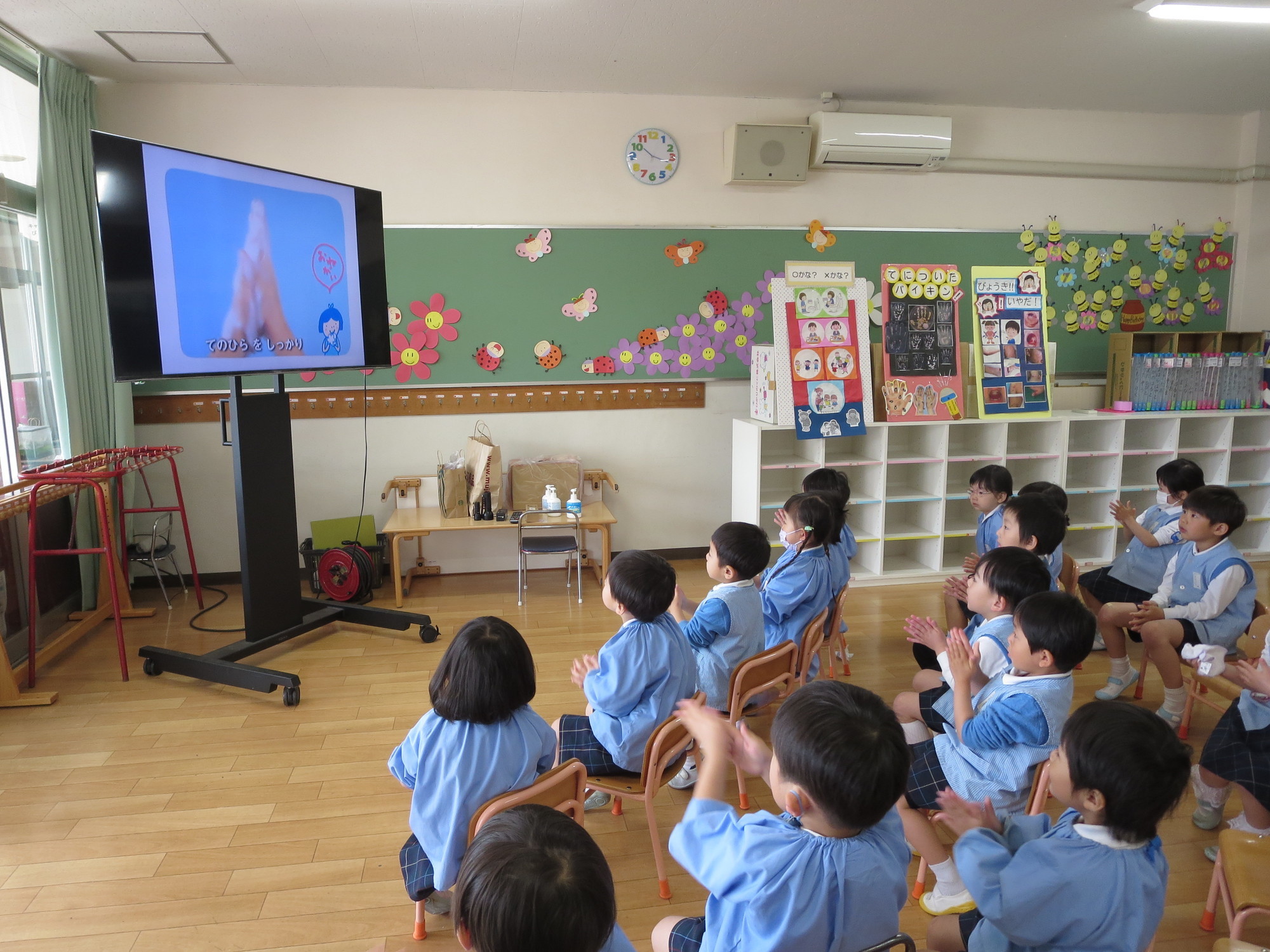 連日、看護師先生の手洗い指導も入り、手洗いのビデオを観ながら、せっけんをつけ、