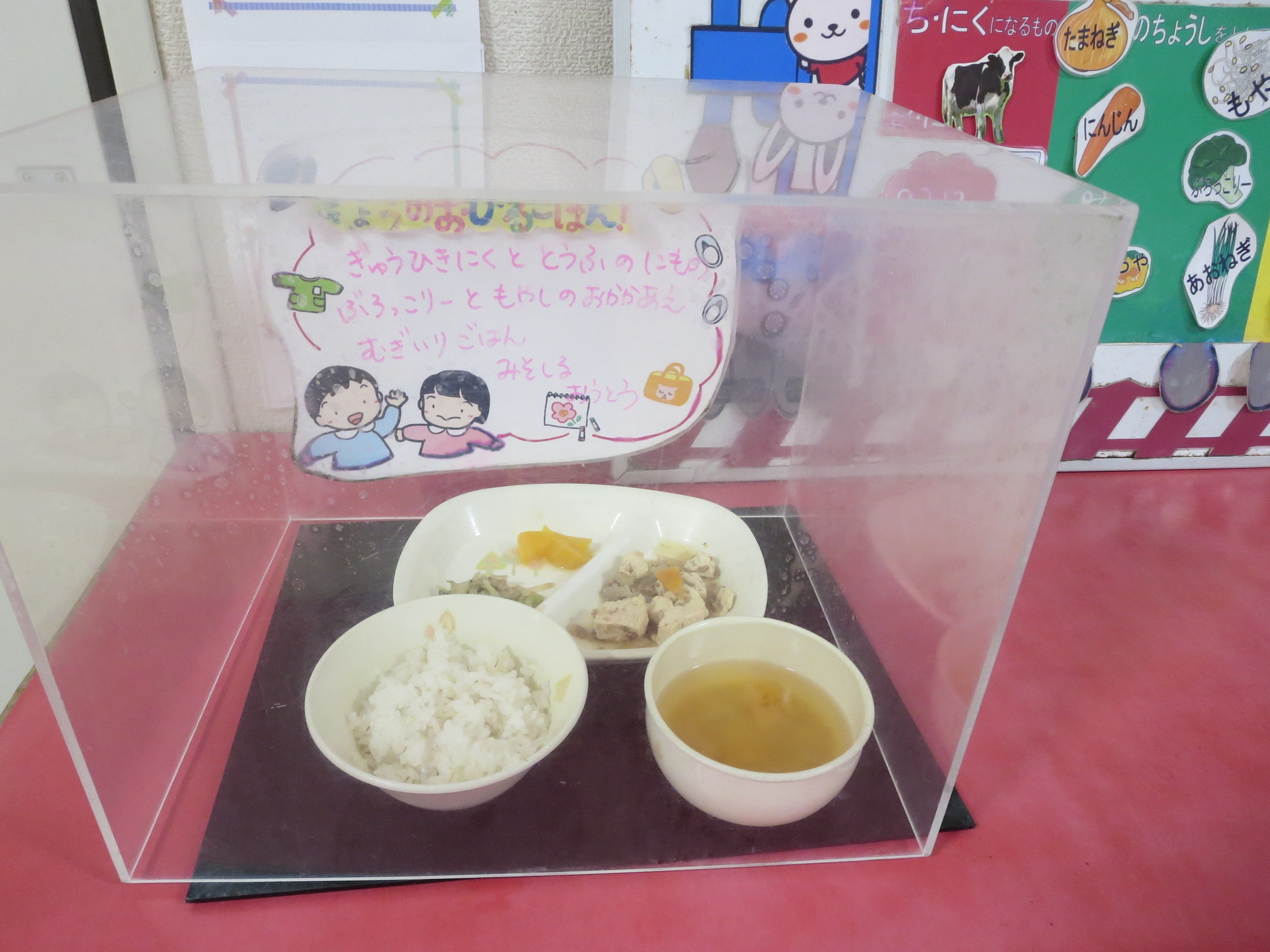 今日は、麦も入ったごはんでした。(健康的ですね。)