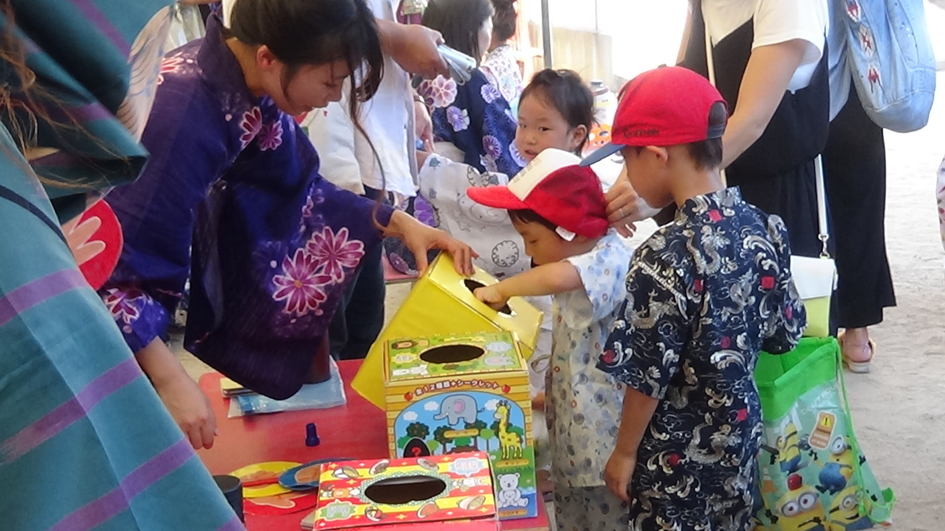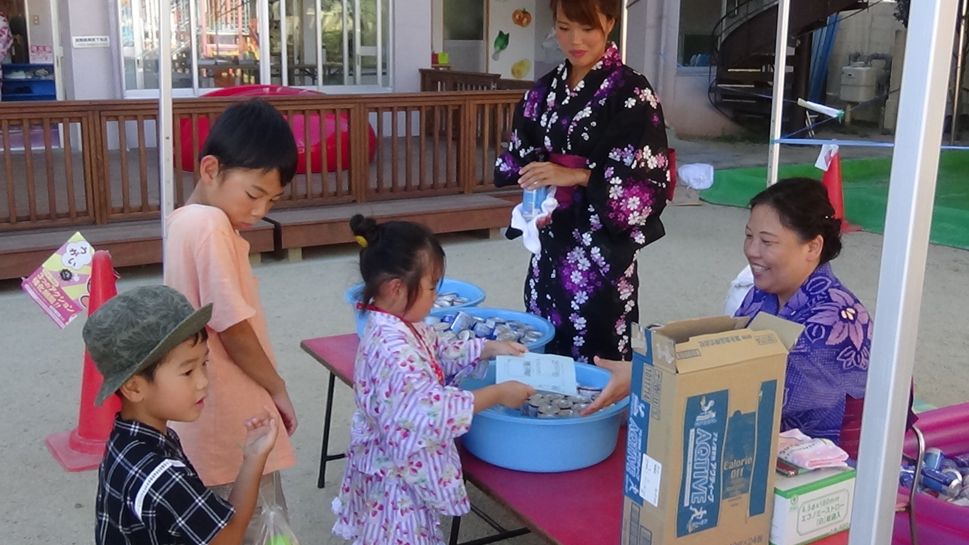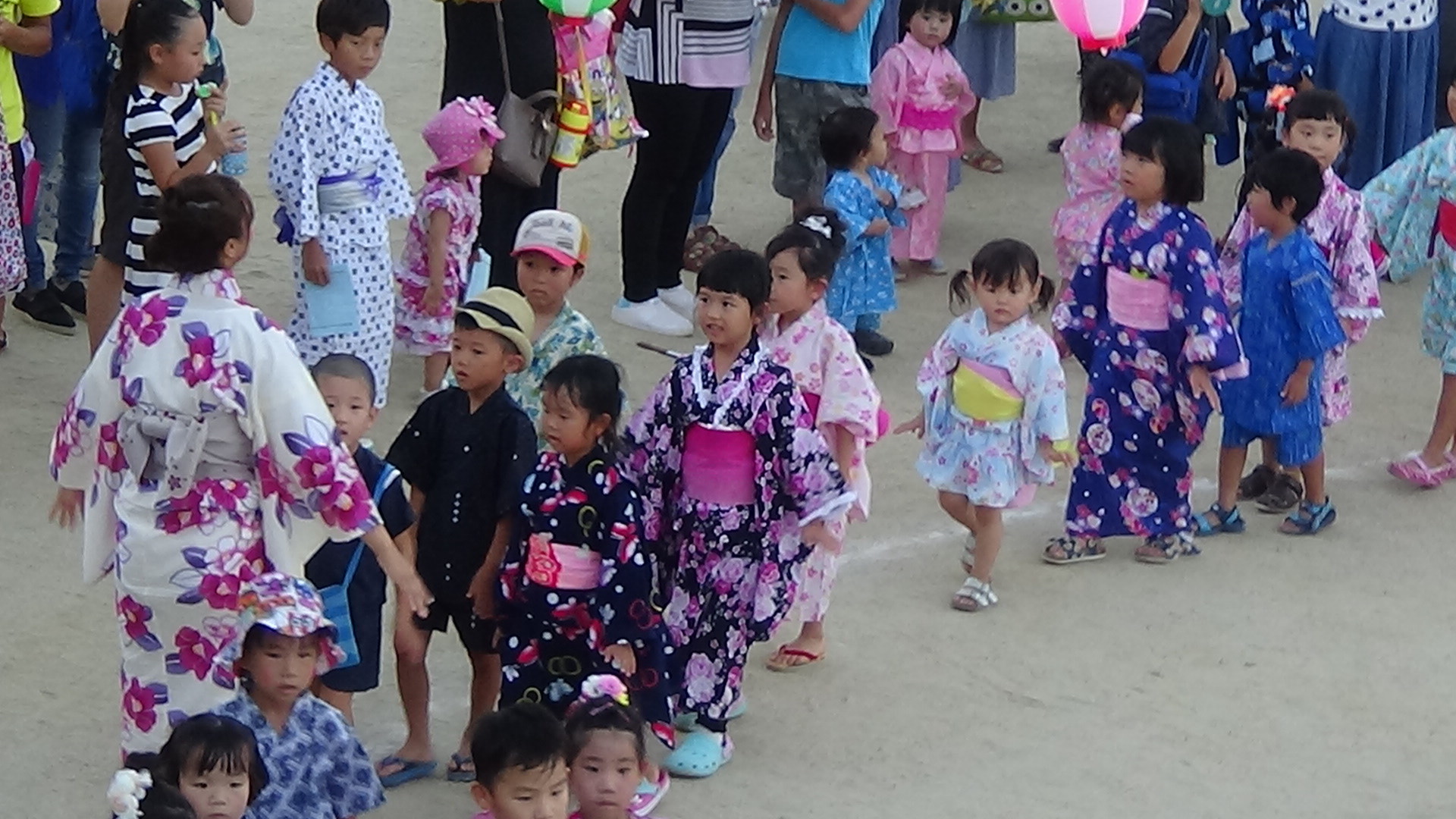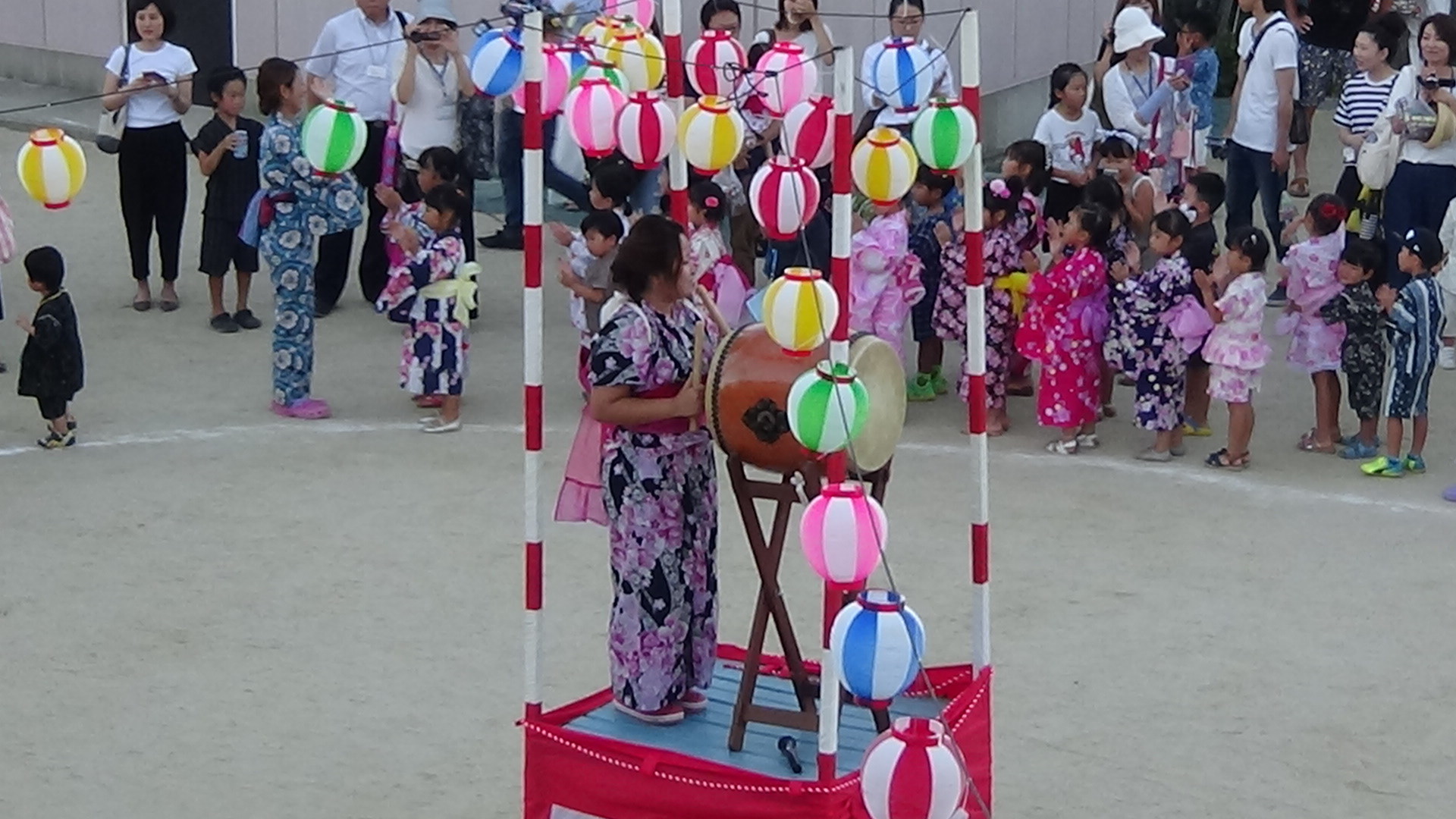 色鮮やかな浴衣に髪飾り、子どもたちも職員も華やかに着飾って、にぎやかなお祭りとなりました。
