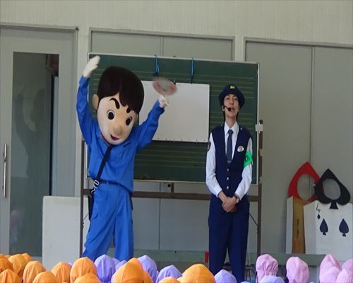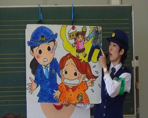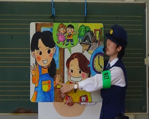 今日は、大阪府警よりおまわりさんが来られ、安全教室が開かれました。