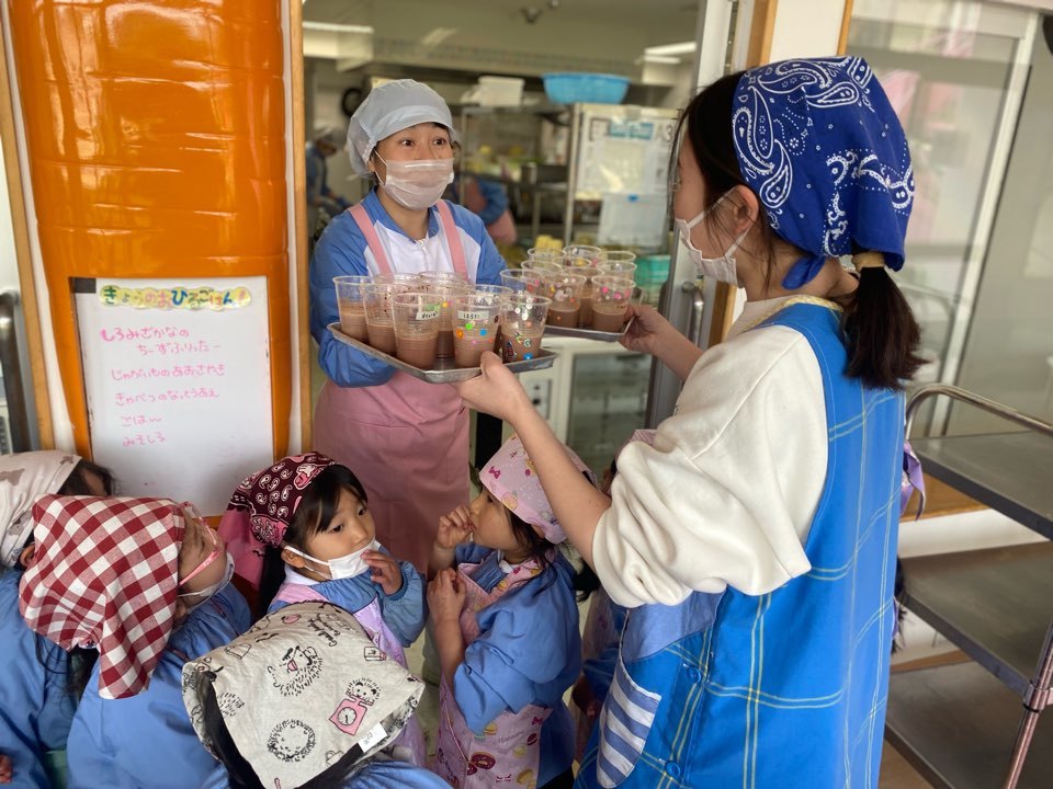 給食さんに冷蔵庫で冷やしてもらって…