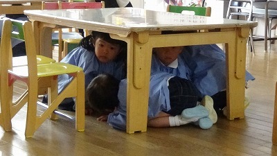 「強い地震が起こりました!」というアナウンスで、子どもたちは、いつもよりピリッと緊張していたようです。