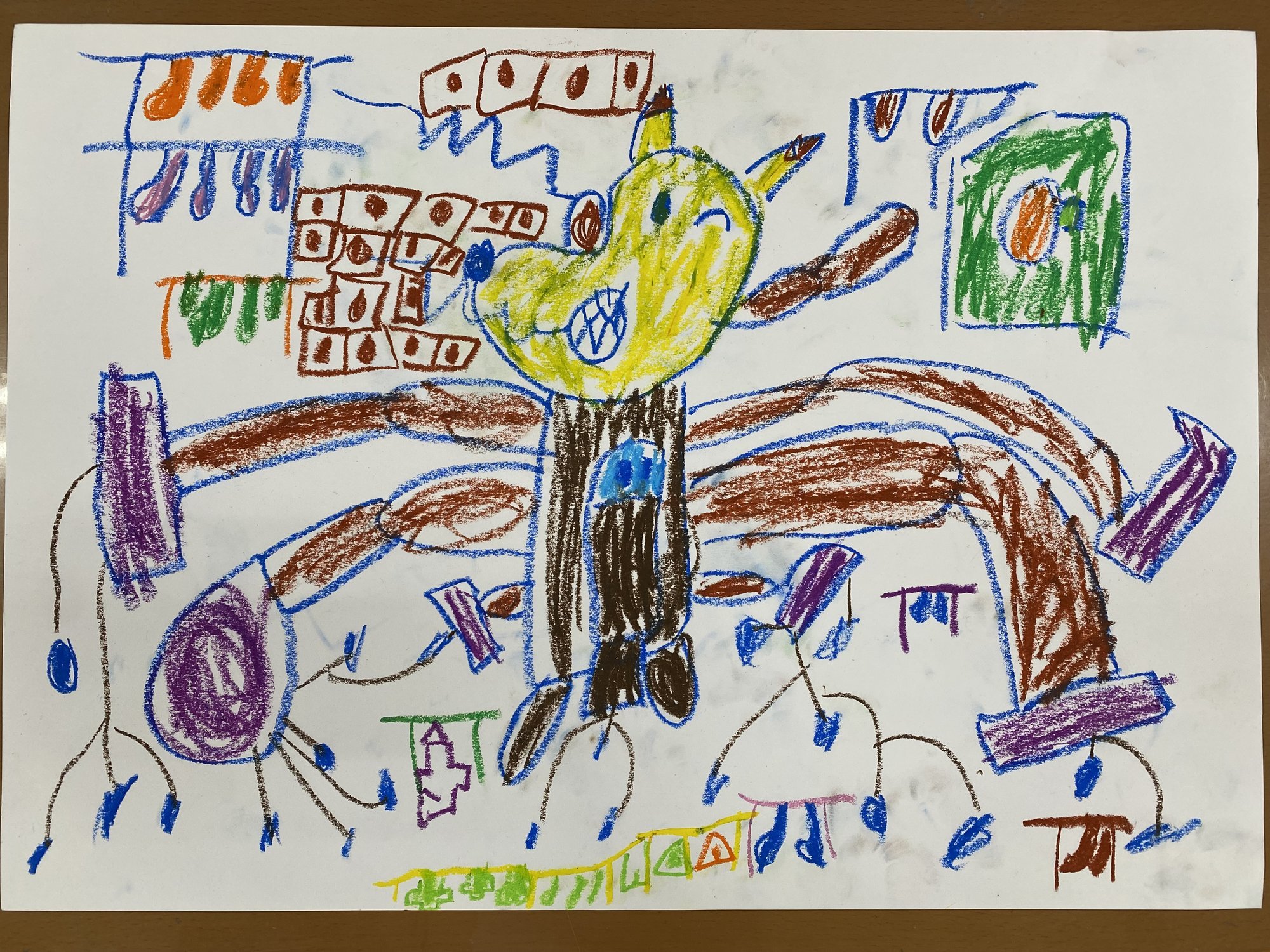未来の科学の夢絵画展 受賞作品 2025/03/12 第47回 未来の科学の夢絵画展で 青組 吹野大地くんが奨励賞を受賞されました。 〈作品名〉お手伝いが上手な犬 〈説明文〉お部屋の中の汚れているところをお掃除してくれたり、洗濯物を干してくれたりとお手伝いが大好きな犬。手が4つもあるところがチャームポイント。 これからの未来に「こんな生き物がいたら嬉しいな!」と考えたものをクレパスで上手に描いてくれました! おめでとうございます!