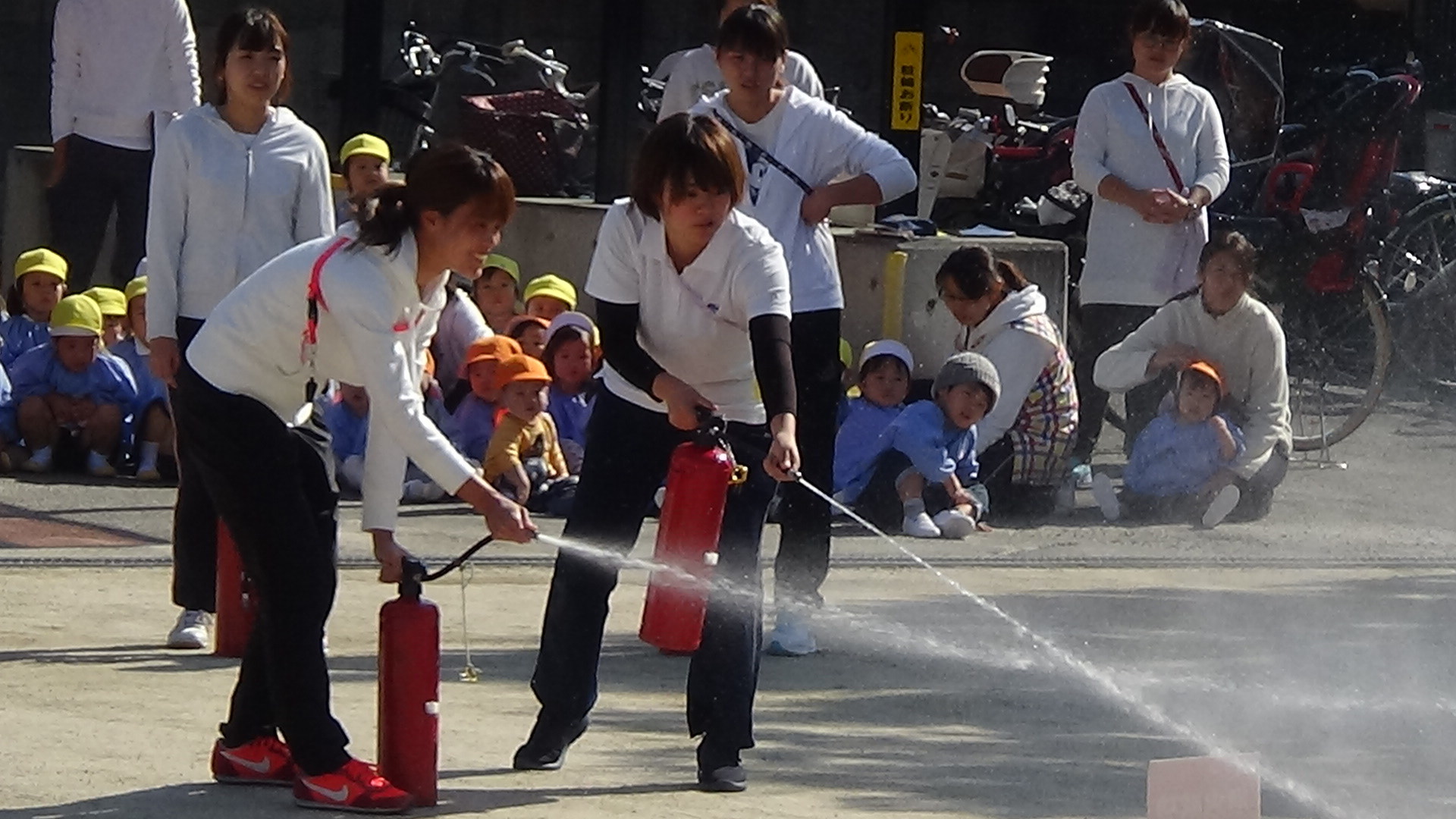職員には、火災探知機や放送のかけ方、通報の仕方、消火器の使い方を覚え、