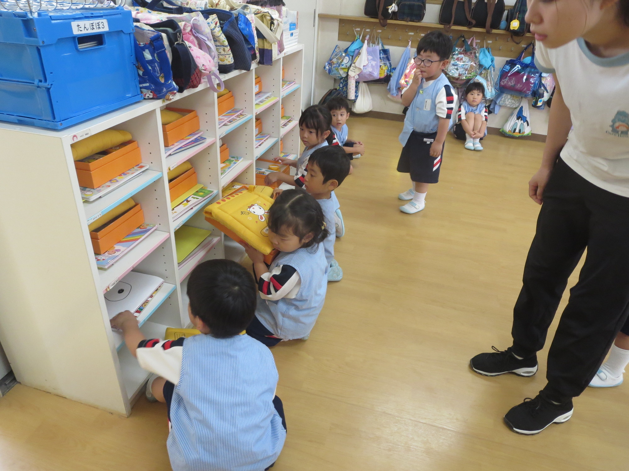 自分のお道具箱など、ロッカーの荷物を高い所に置きました。