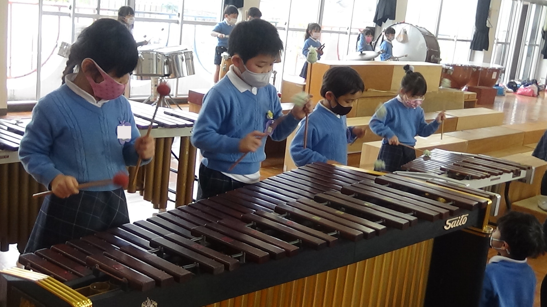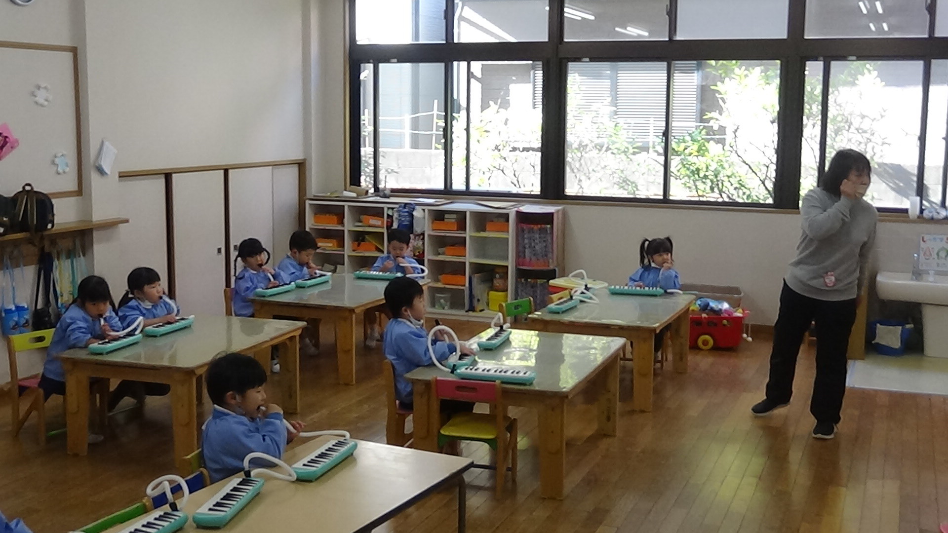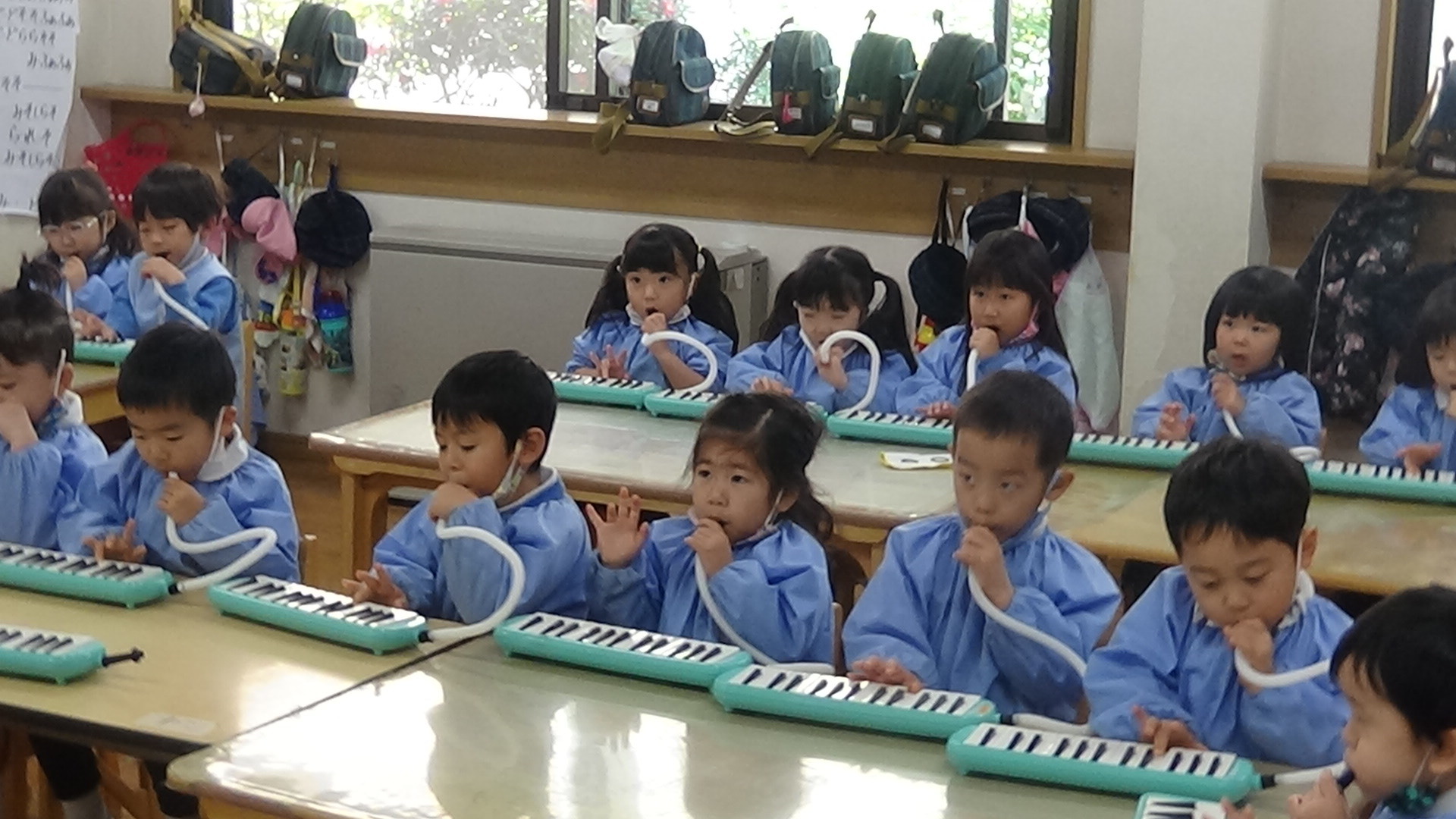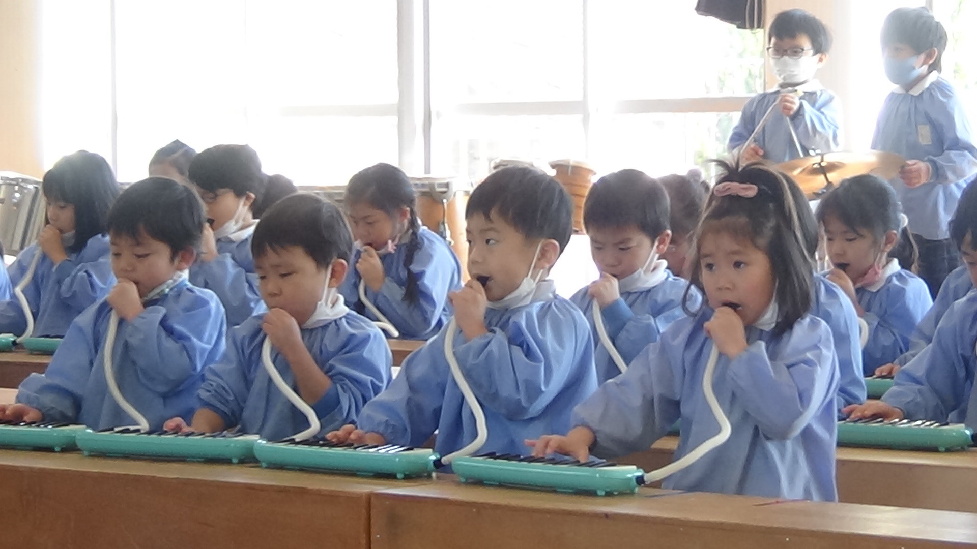 年長さんになると、みんなのメロディオンの音が澄んで、大きな音が出せるようになります。