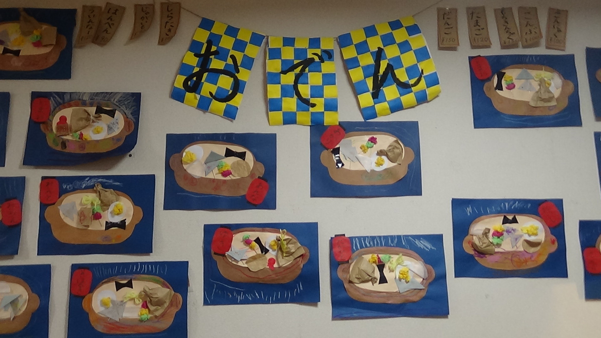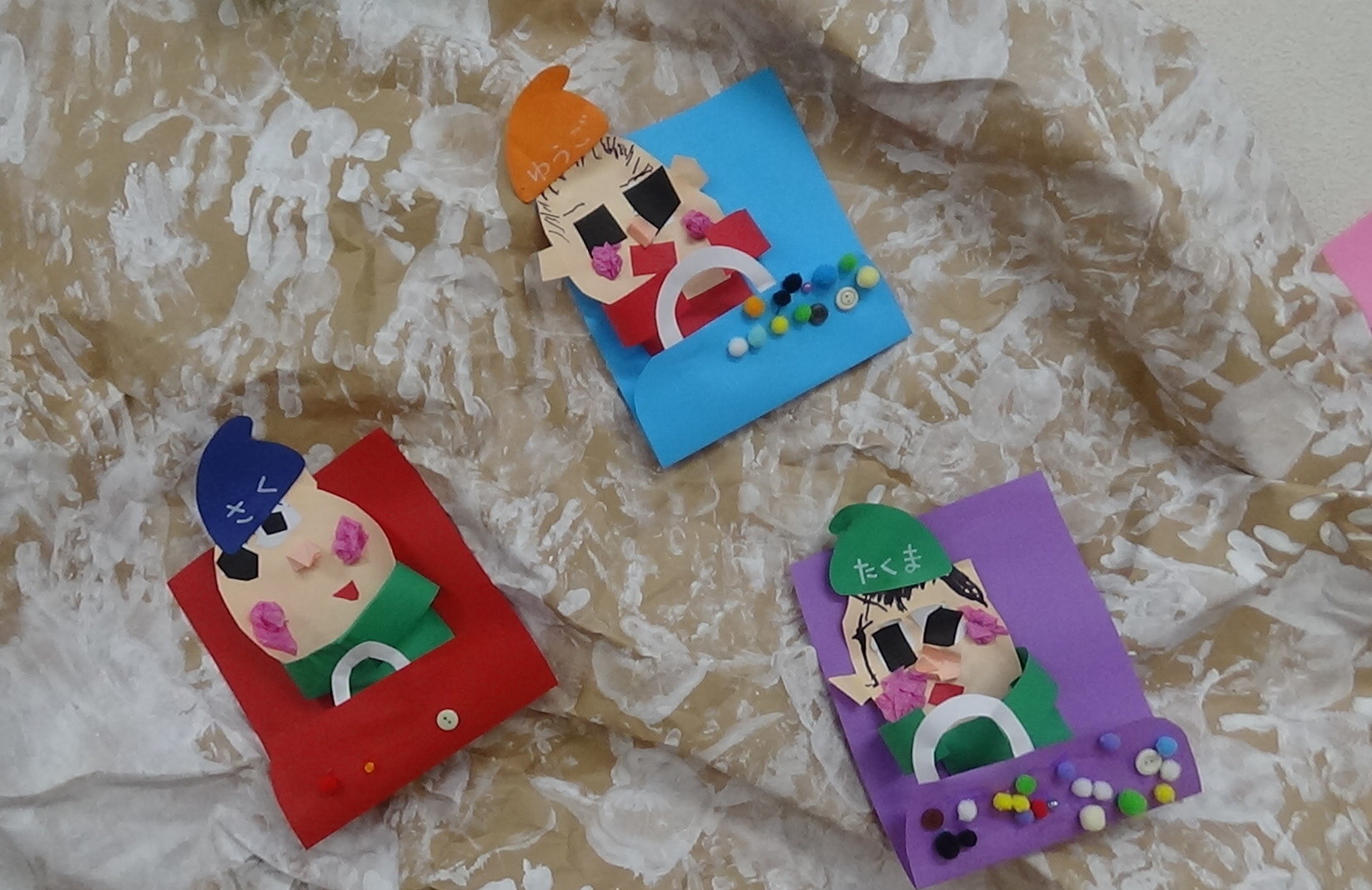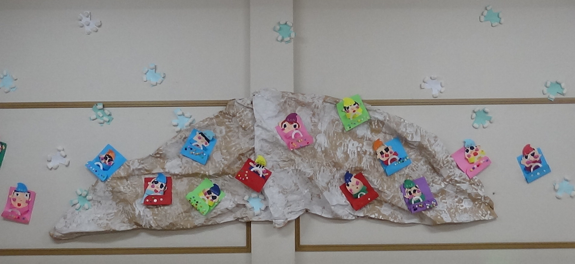 よく見ると、子どもたちの手形で、雪の感じを出しています。