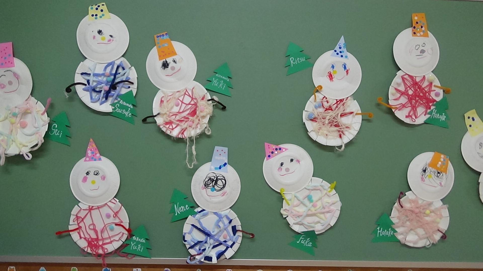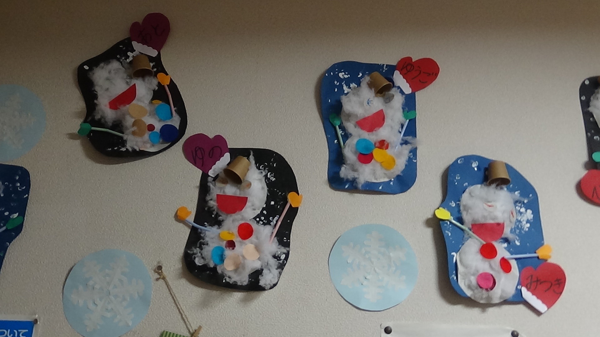 1歳児さんらしい、可愛い雪だるまができました。