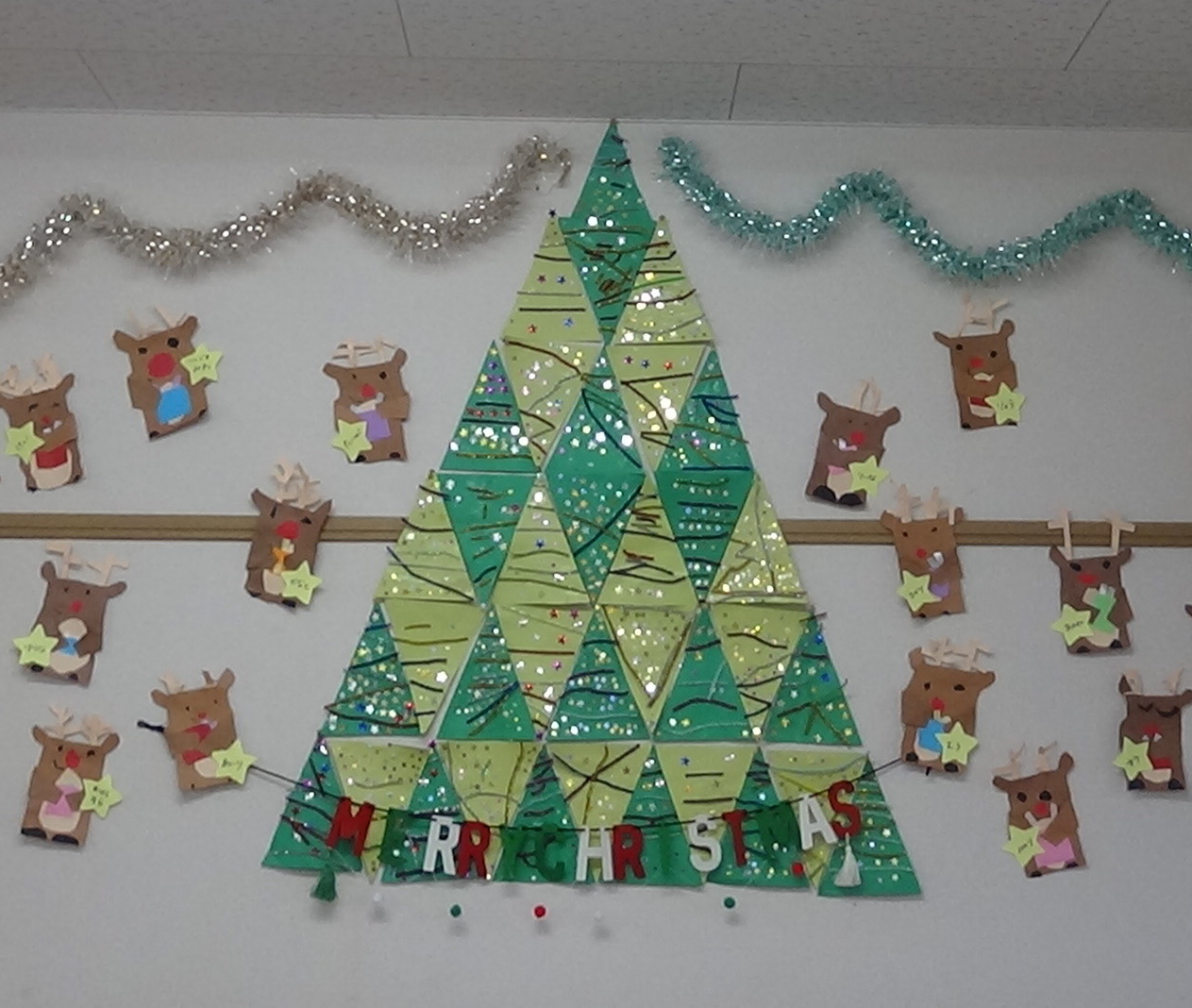 たくさんのクラスがクリスマスにちなんだ制作をしていました。