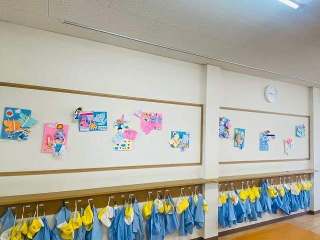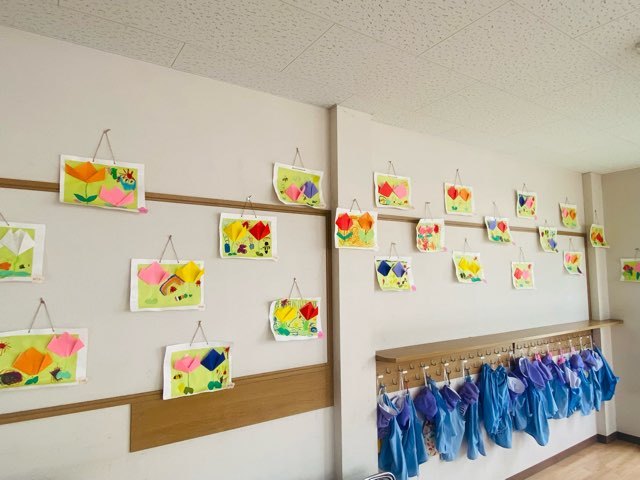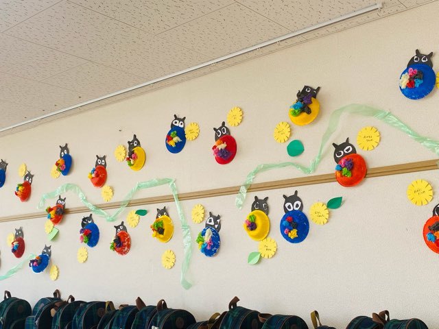 さて、今月は季節の壁面を作りました。