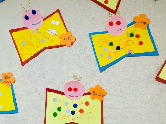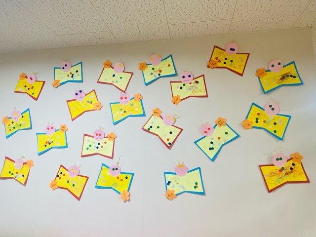 春といえば・・・「ちょうちょ」羽の模様には画用紙の型抜きや自分で形を切って作りました。