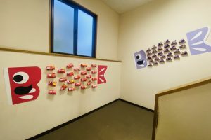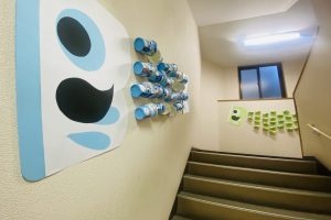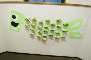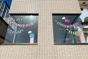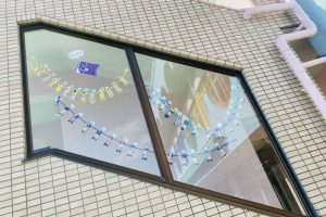緑の階段のガラスに飾っていますのでお迎えの際に是非見てくださいね!