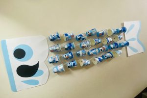 今の時期ならではの子ども達の可愛い足形を取りました。それをウロコに見立てて作品にしています。