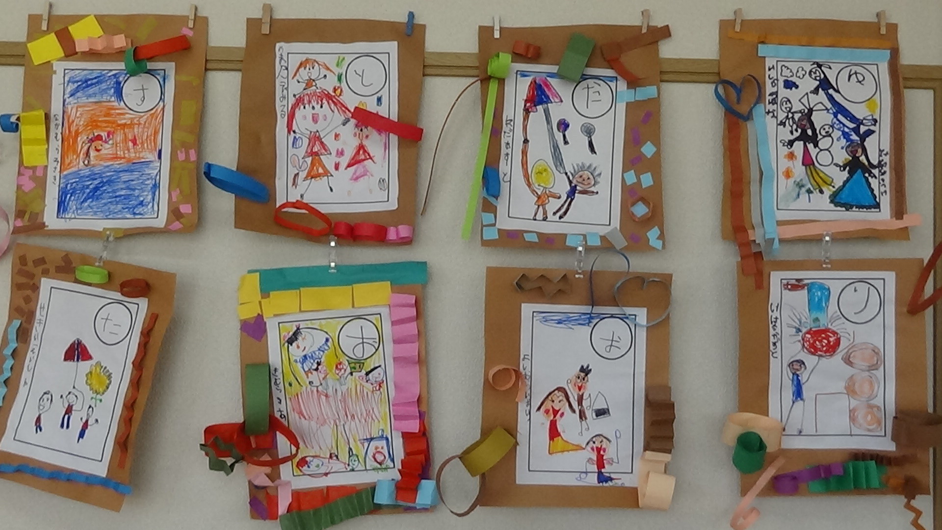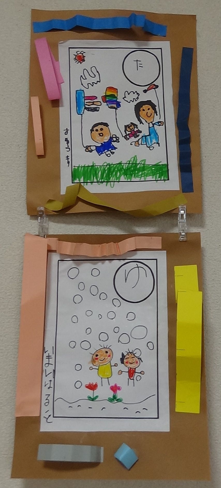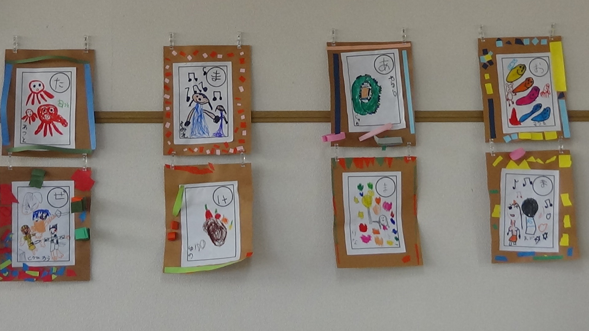 年中組は『かるた』です。カラフルな『かるた』がたくさん飾られ、お部屋が明るくなりました。