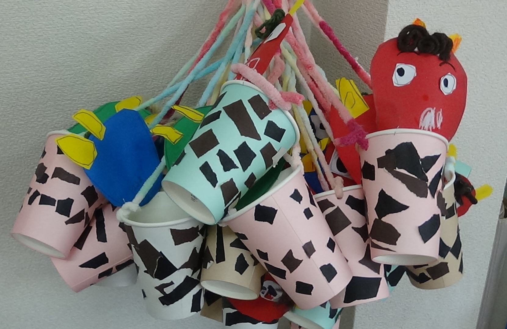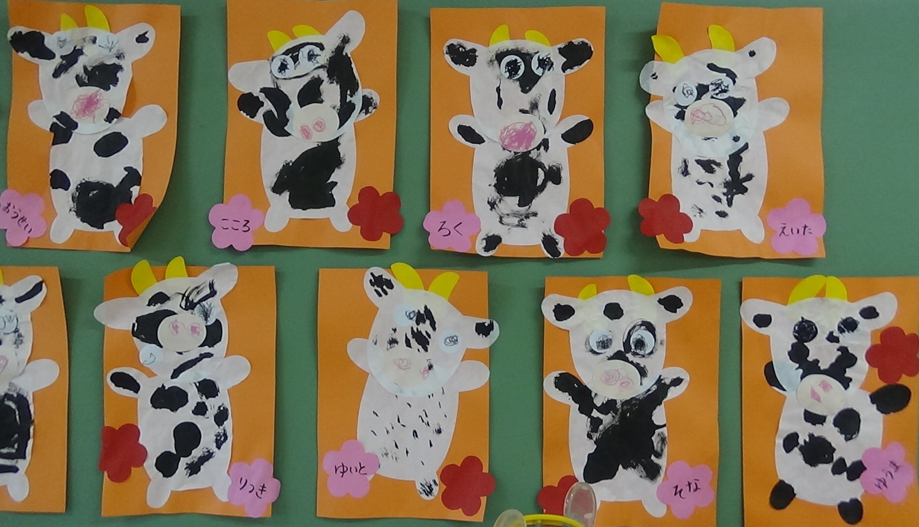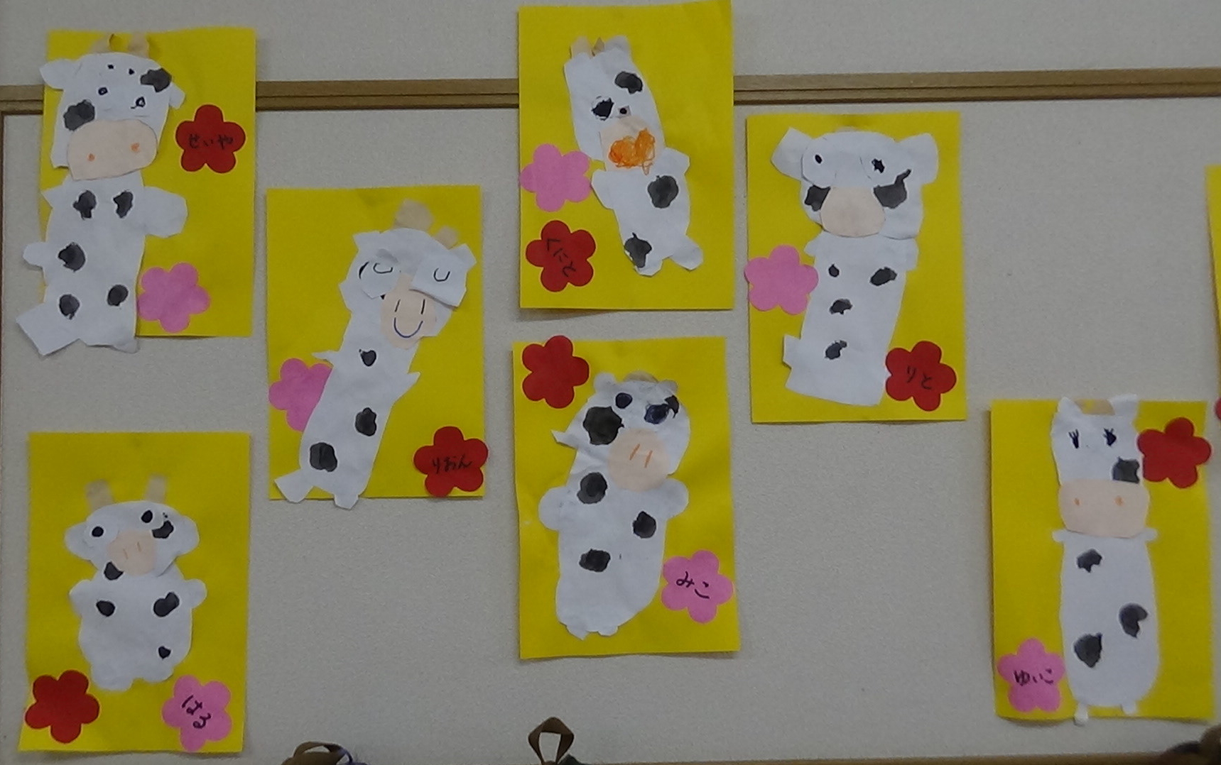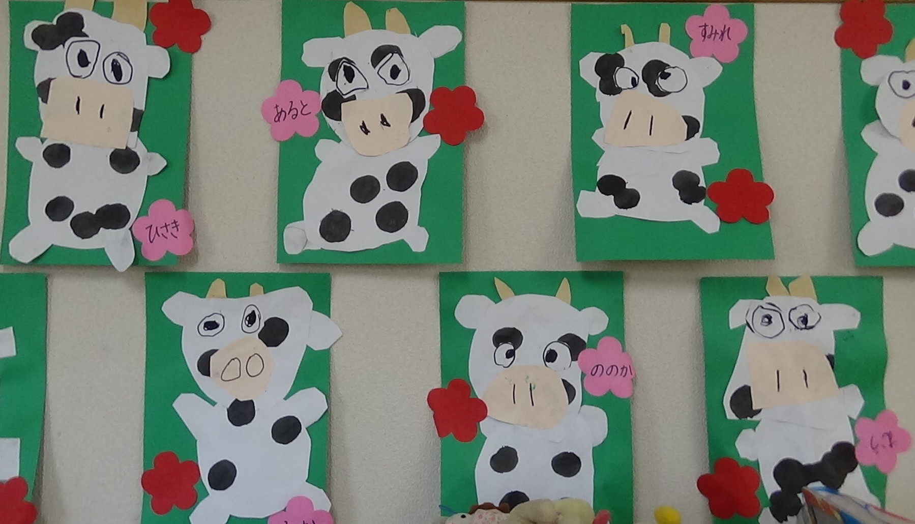 お正月にちなんだ『書初め』や『かるた』『丑』『だるま』やとっても寒いこの季節に欠かせない『あったか手袋』