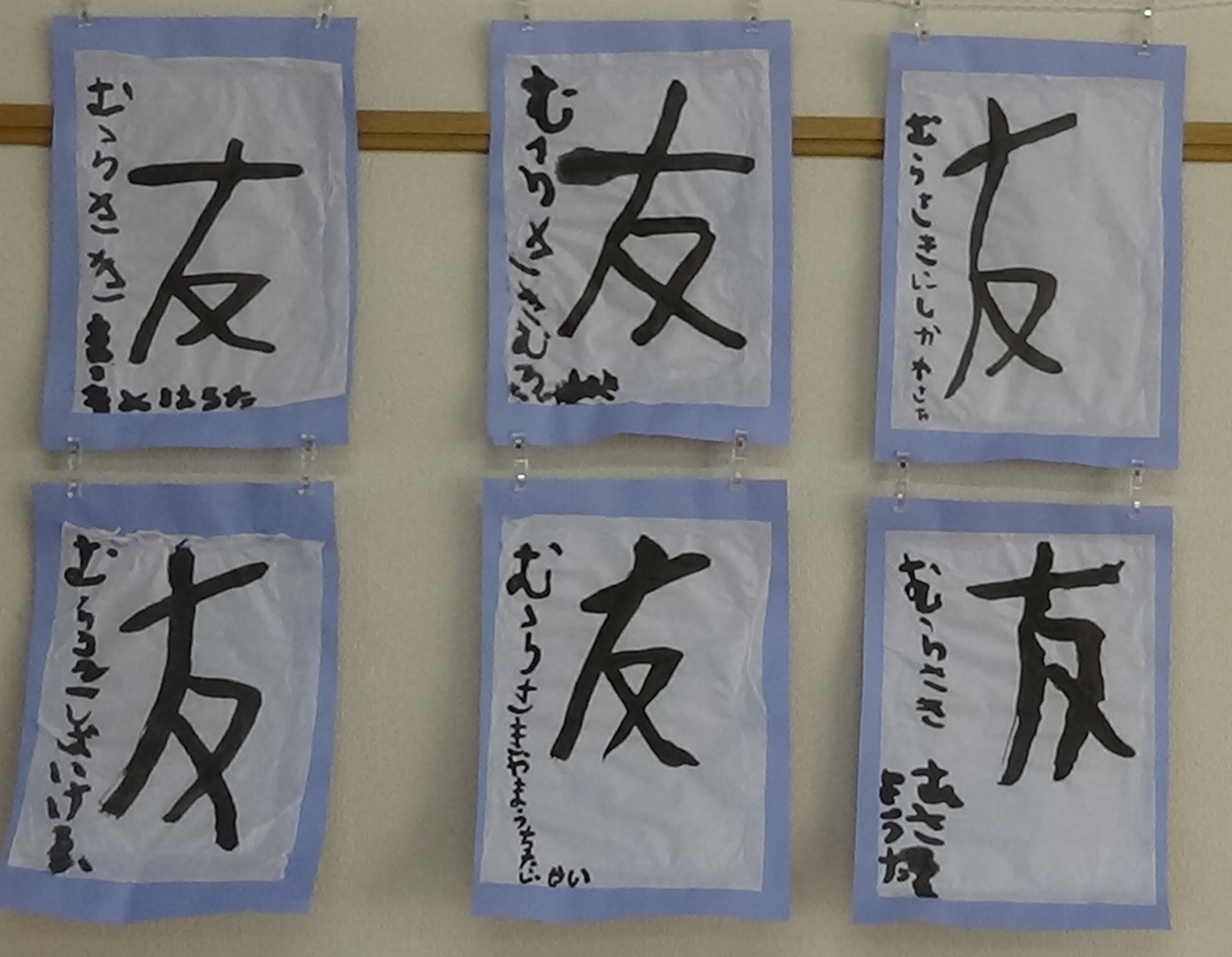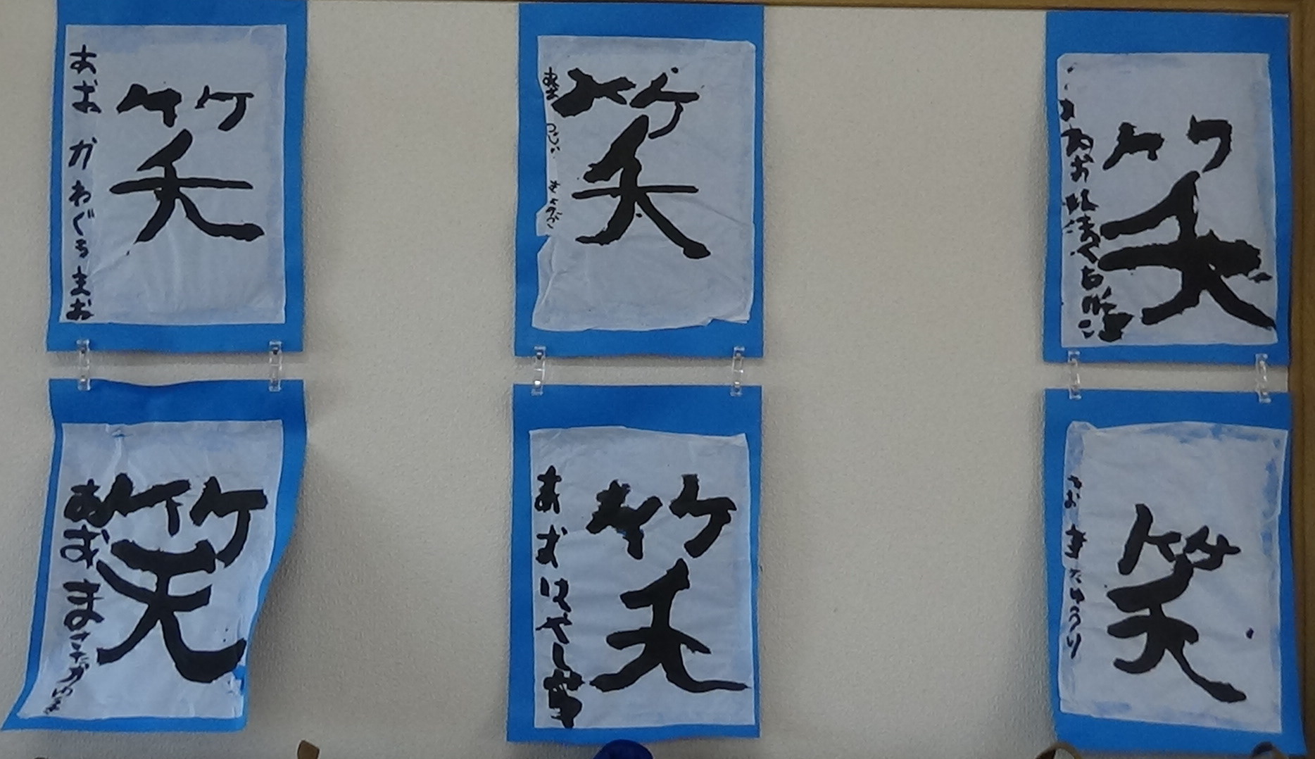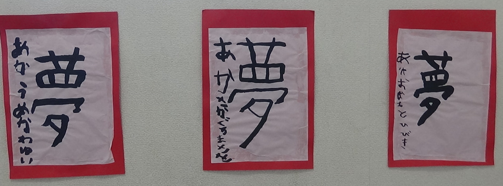 年長組さんはクラスで選んだ一文字を書いてみました。