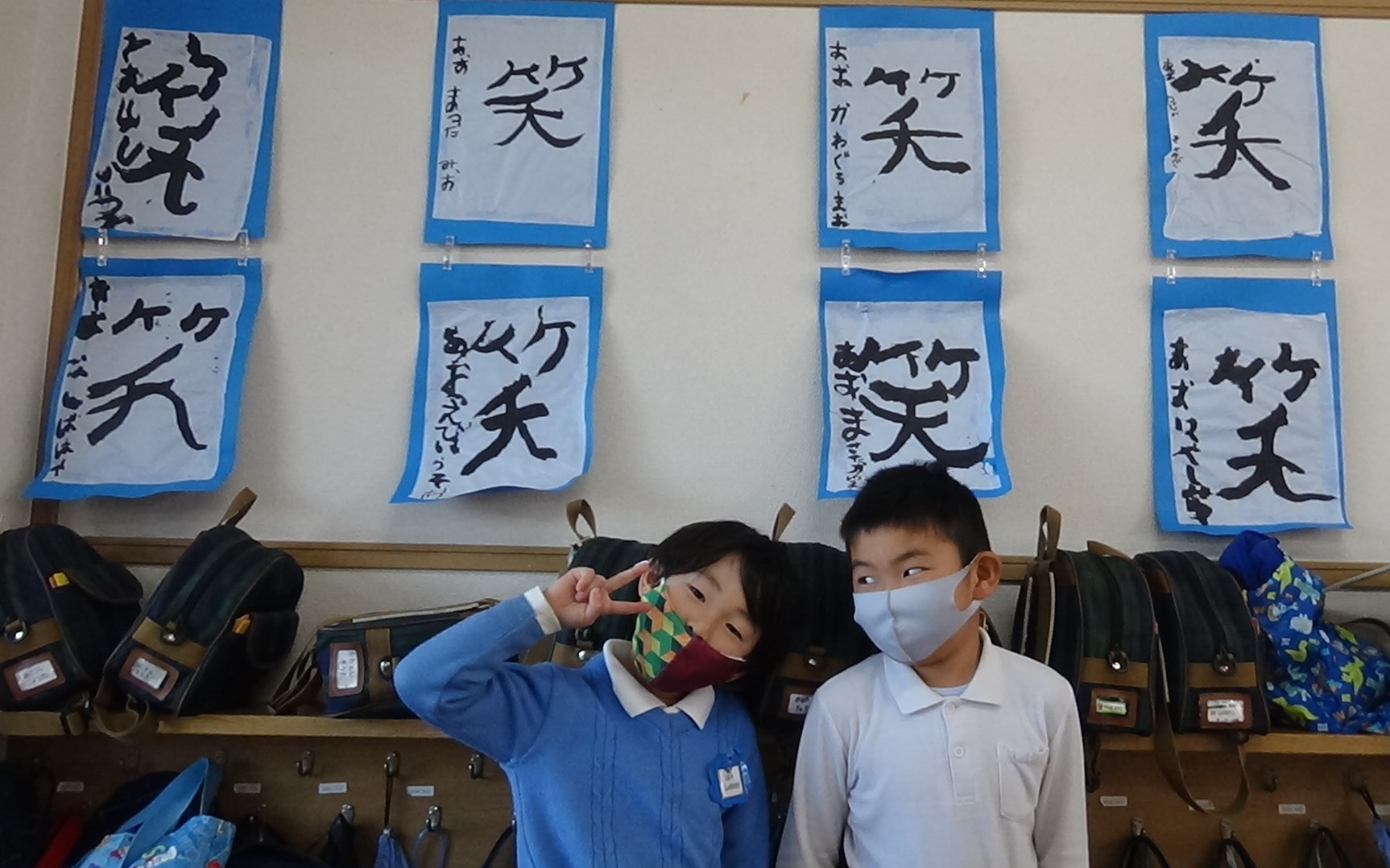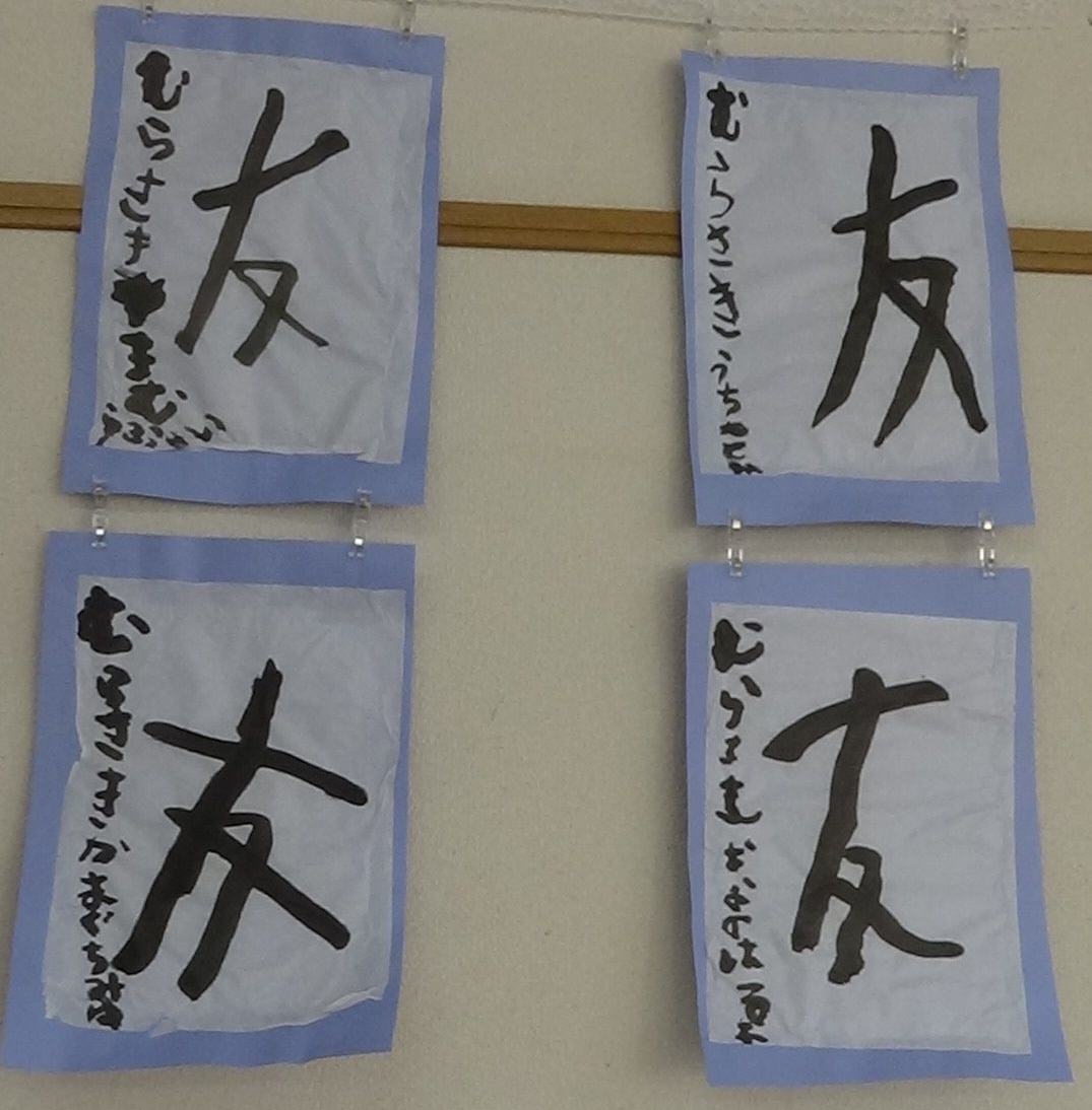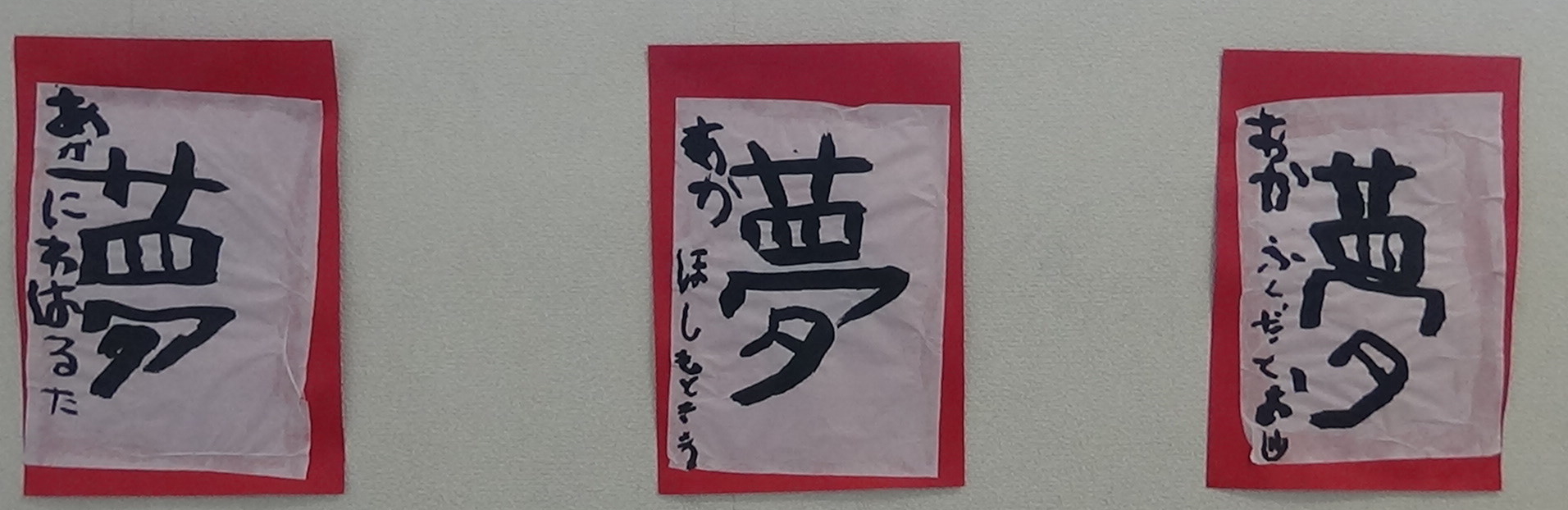 年長組さんはクラスで選んだ一文字を書いてみました。