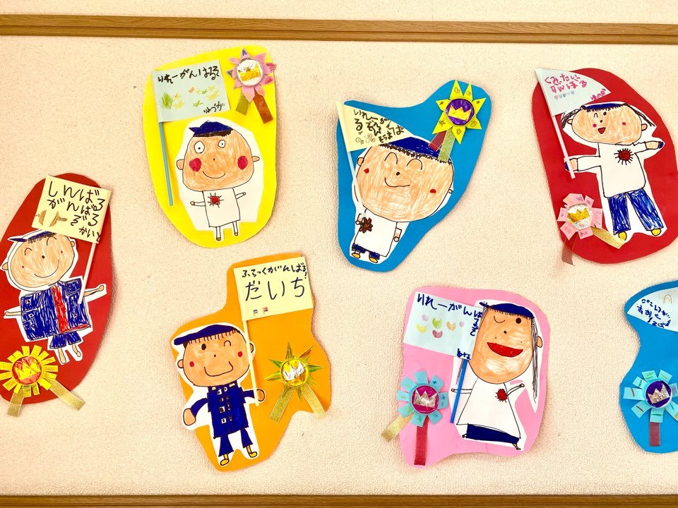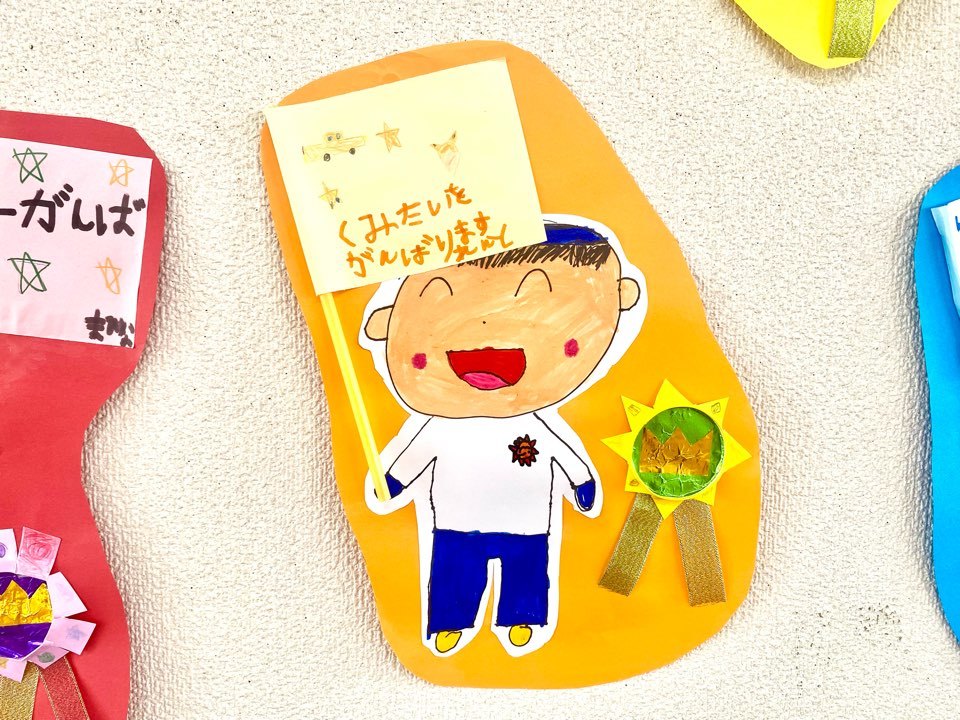 「鼓隊の衣装を着て太鼓を上手に叩くぞ!!」「リレーで1番になるぞ!」と子どもたちの意気込みが書かれています☆
