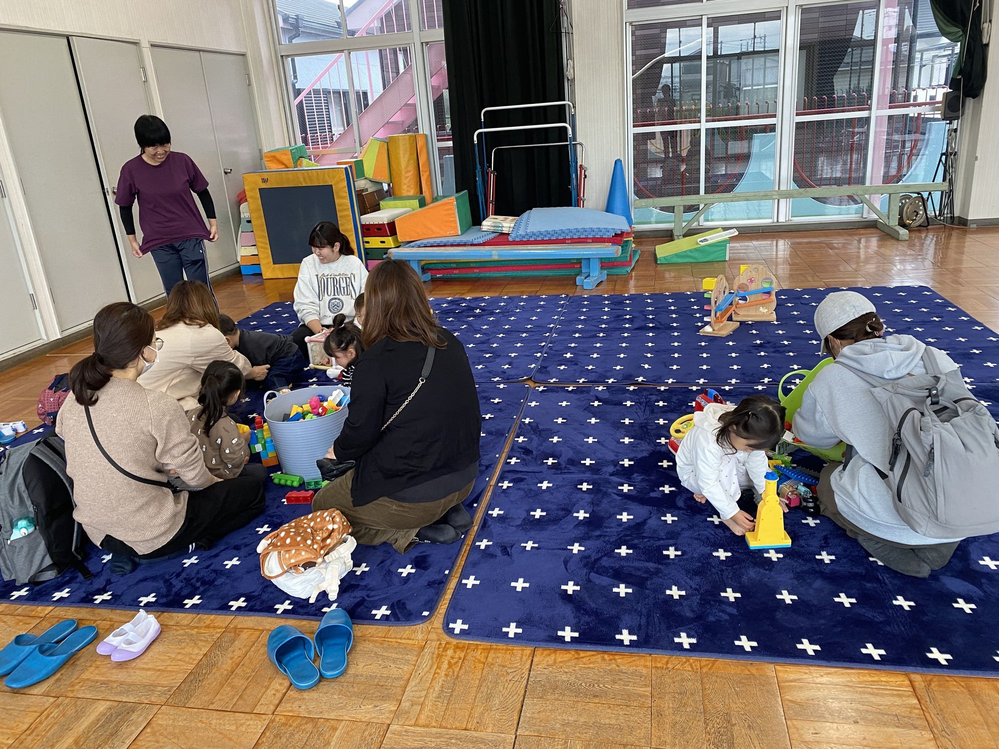 ホールのおもちゃでみんなで遊びます。