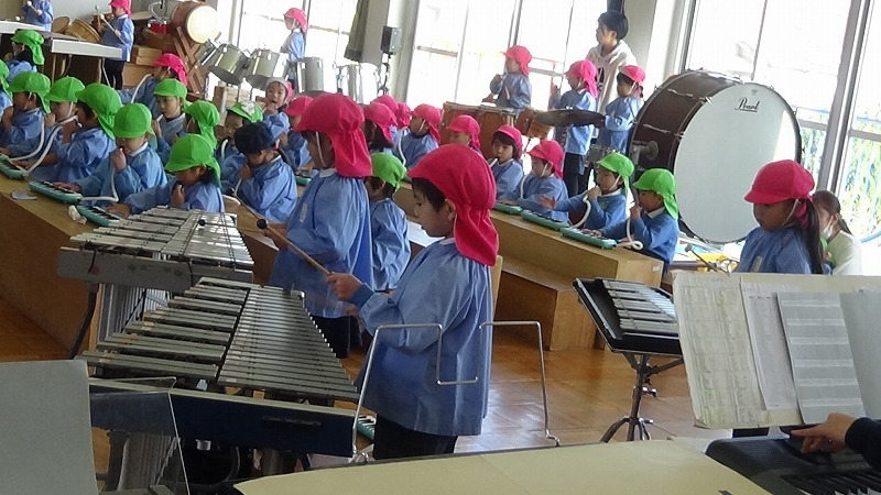 先生の指揮を見ながら、お友達と息を合わせて、イメージを皆で共有しながら演奏する楽しさを味わってほしいものです。