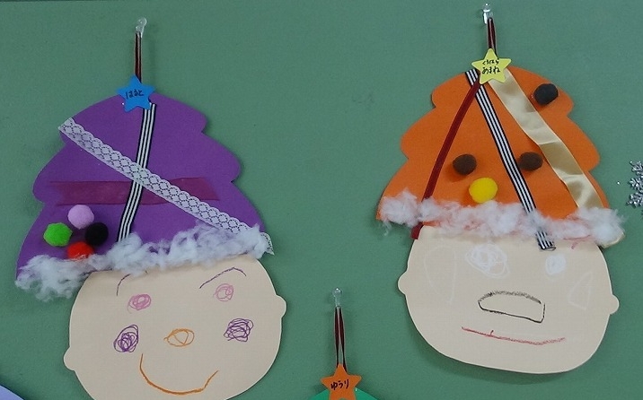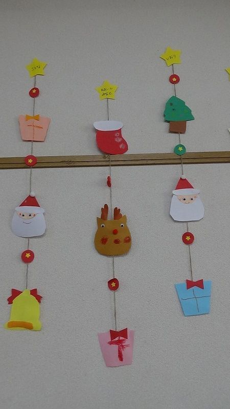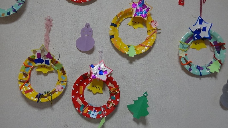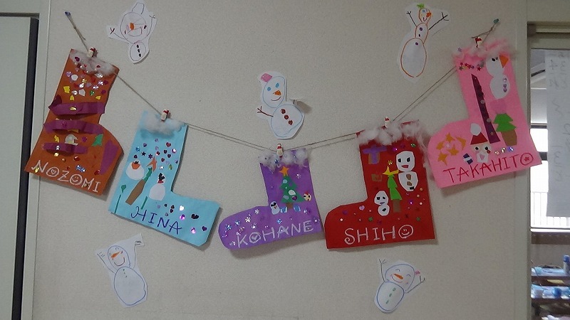 幼稚園の中では、クリスマスソングが聞こえてきたり、クリスマスの飾りものでいっぱいです。