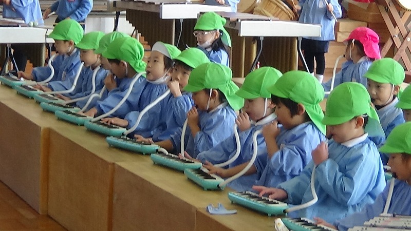 子どもたちは、楽譜を見ず、音を聞いて、自分たちの入る場所、メロディ、リズムを感覚で覚えます。