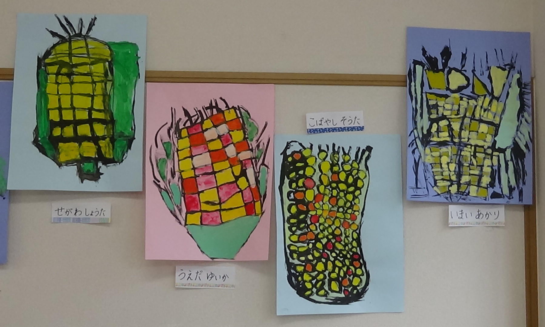 こちらも『本物』のとうもろこしをよく観察して、お絵描きしました。