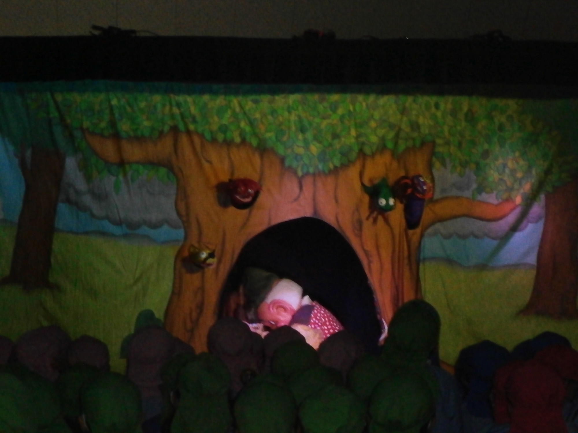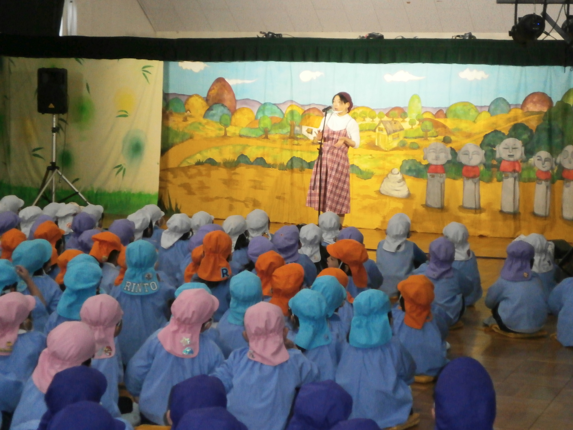 出てくる背景やおじいさん、おばあさん、鬼さんをじっと見つめ、劇に食入るお友だちでした。