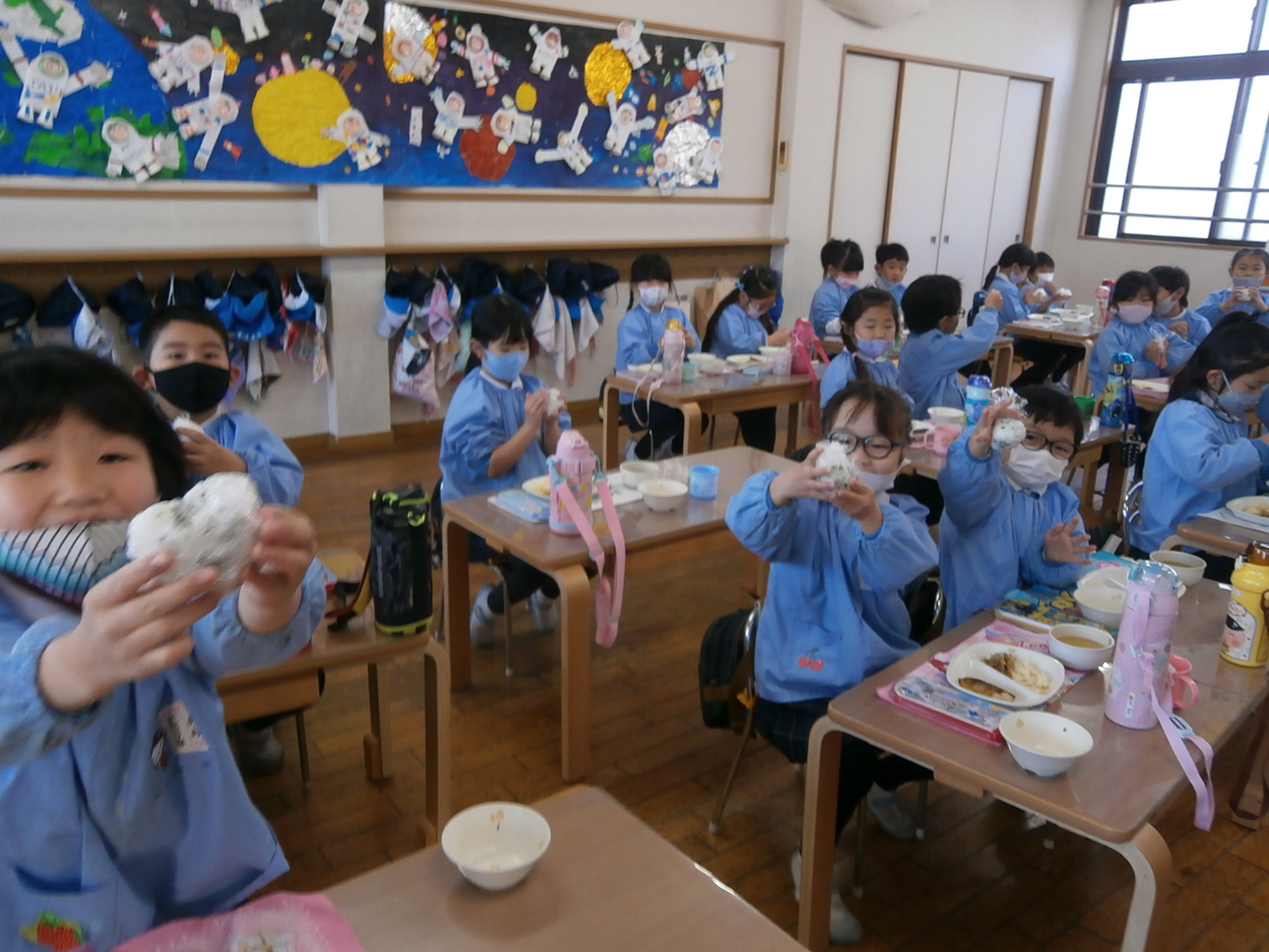 そんなステキな日に、年長組さんは自分で「おにぎり」を握りました。