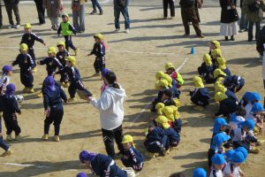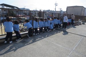 2階のベランダからは、他の学年のお友だちの声援。