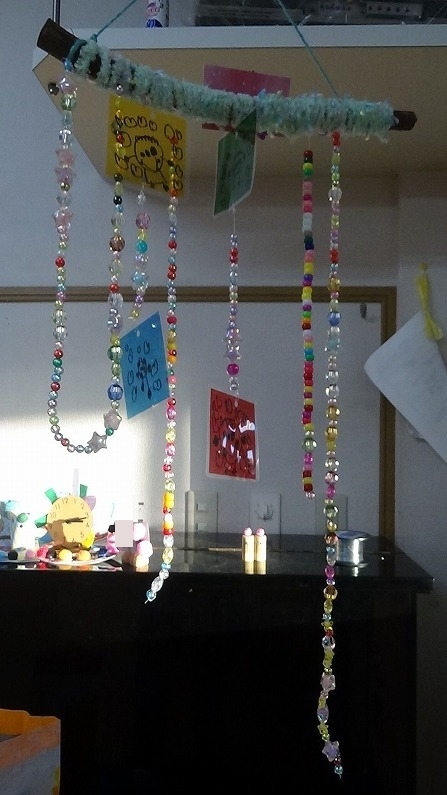 ひも通しも大好き、どのビーズをどんな順番で通していくか、子どもたちは真剣にビーズを選びながら取り組んてくれました。