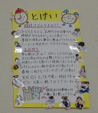 【たんぽぽ2組】「時計」布でパズル!