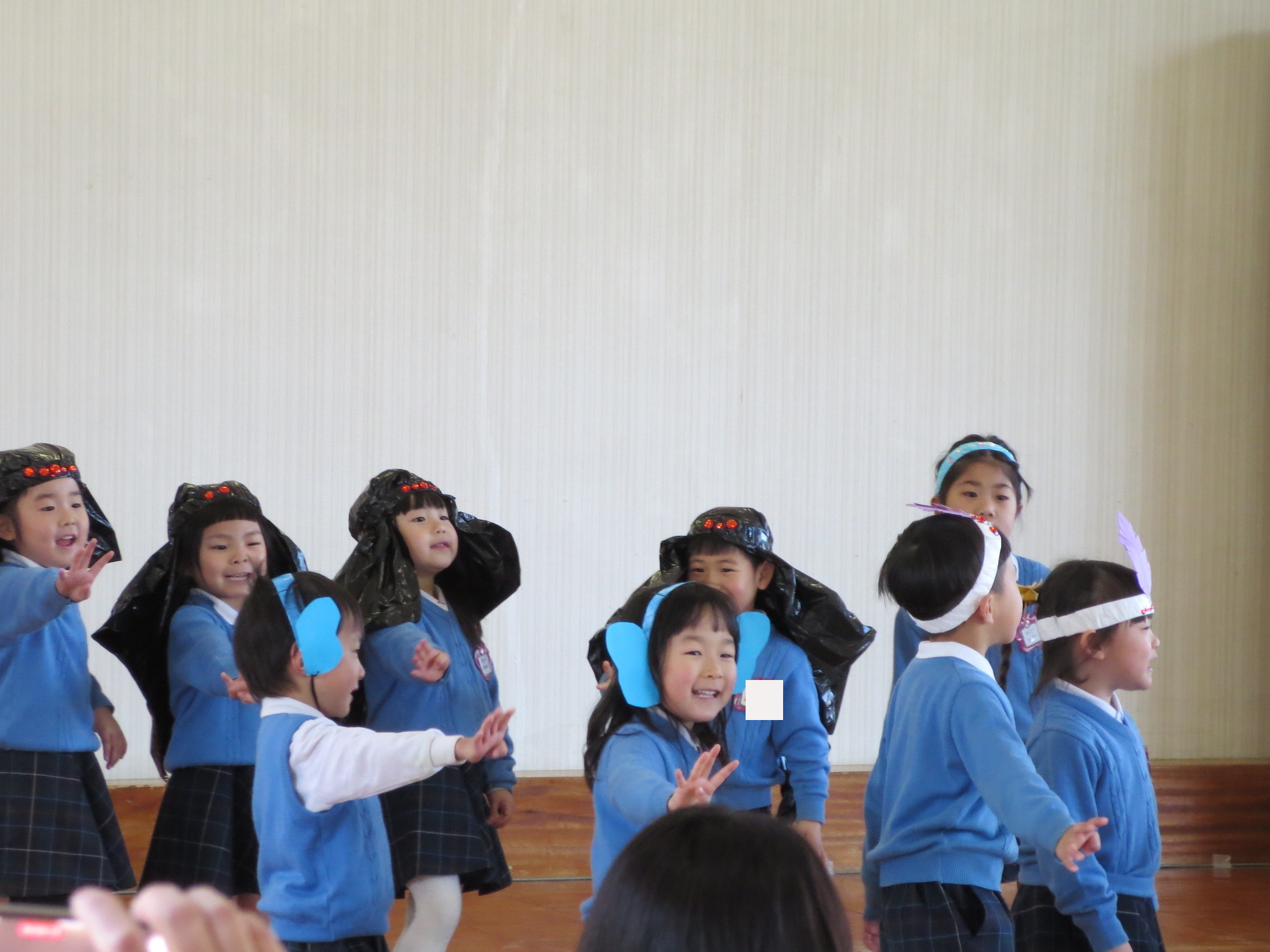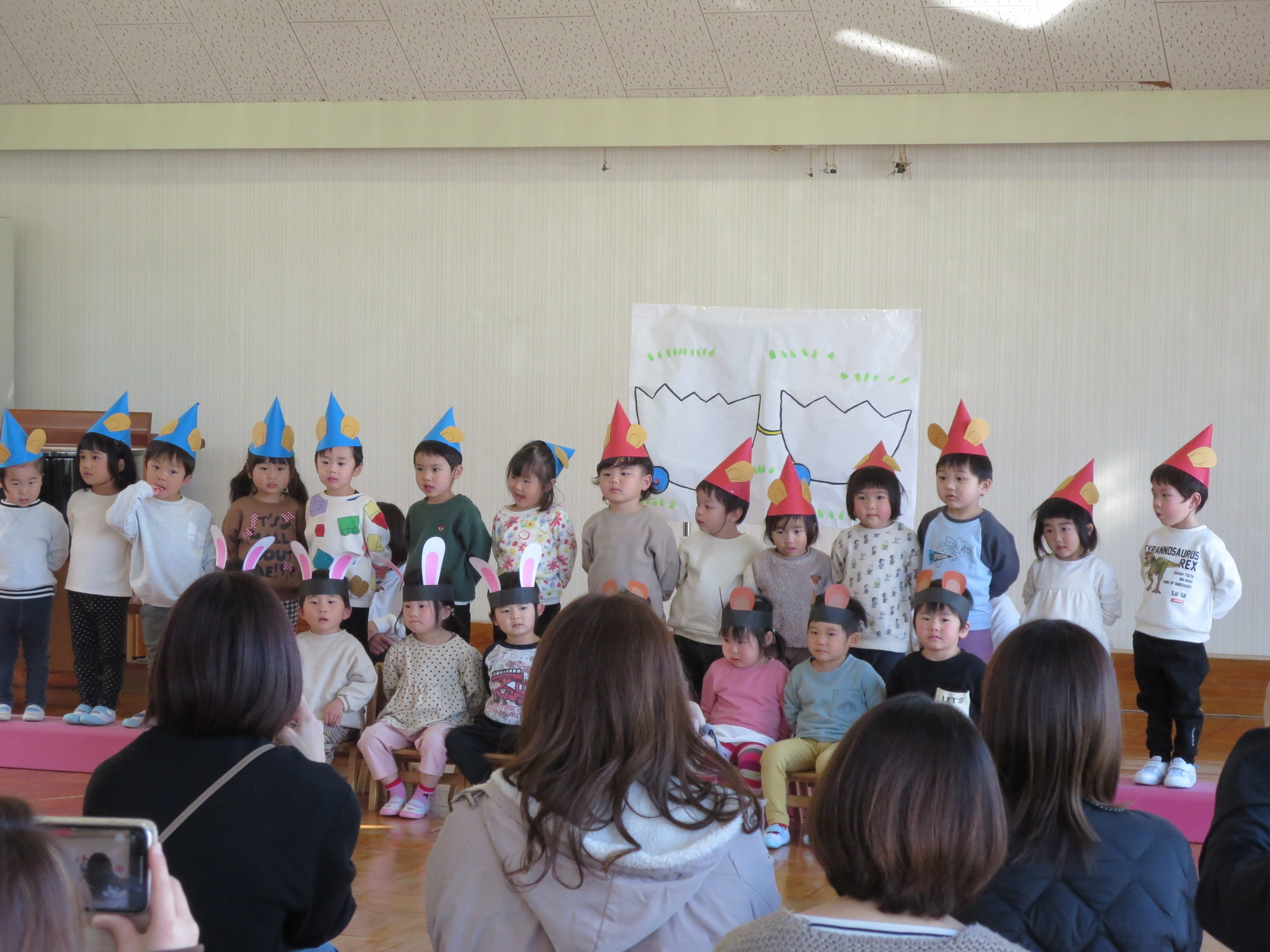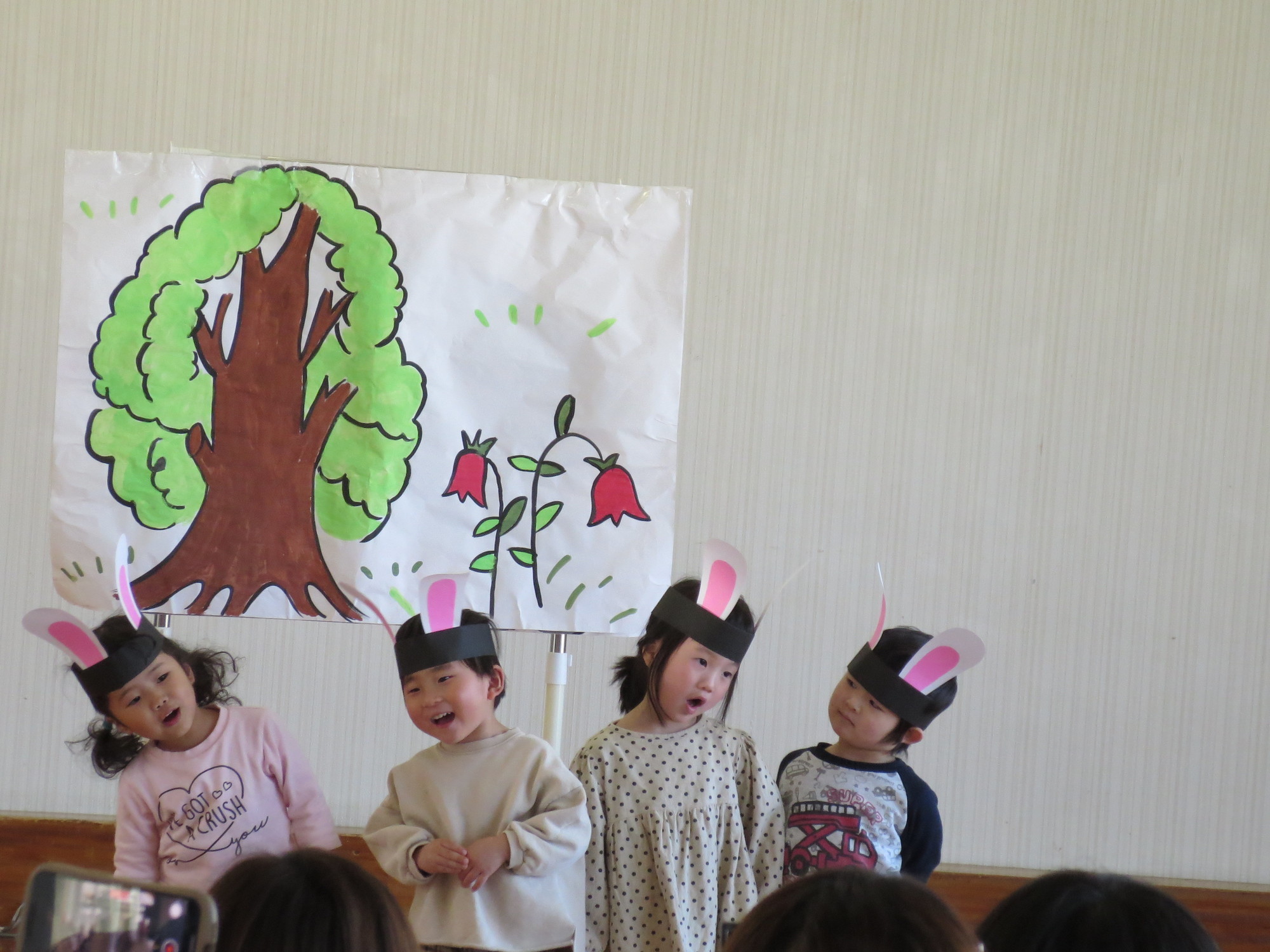 つぼみさんもかわいい飾りをつけて、しっかり声を出し、物おじせずうたも歌えていました。