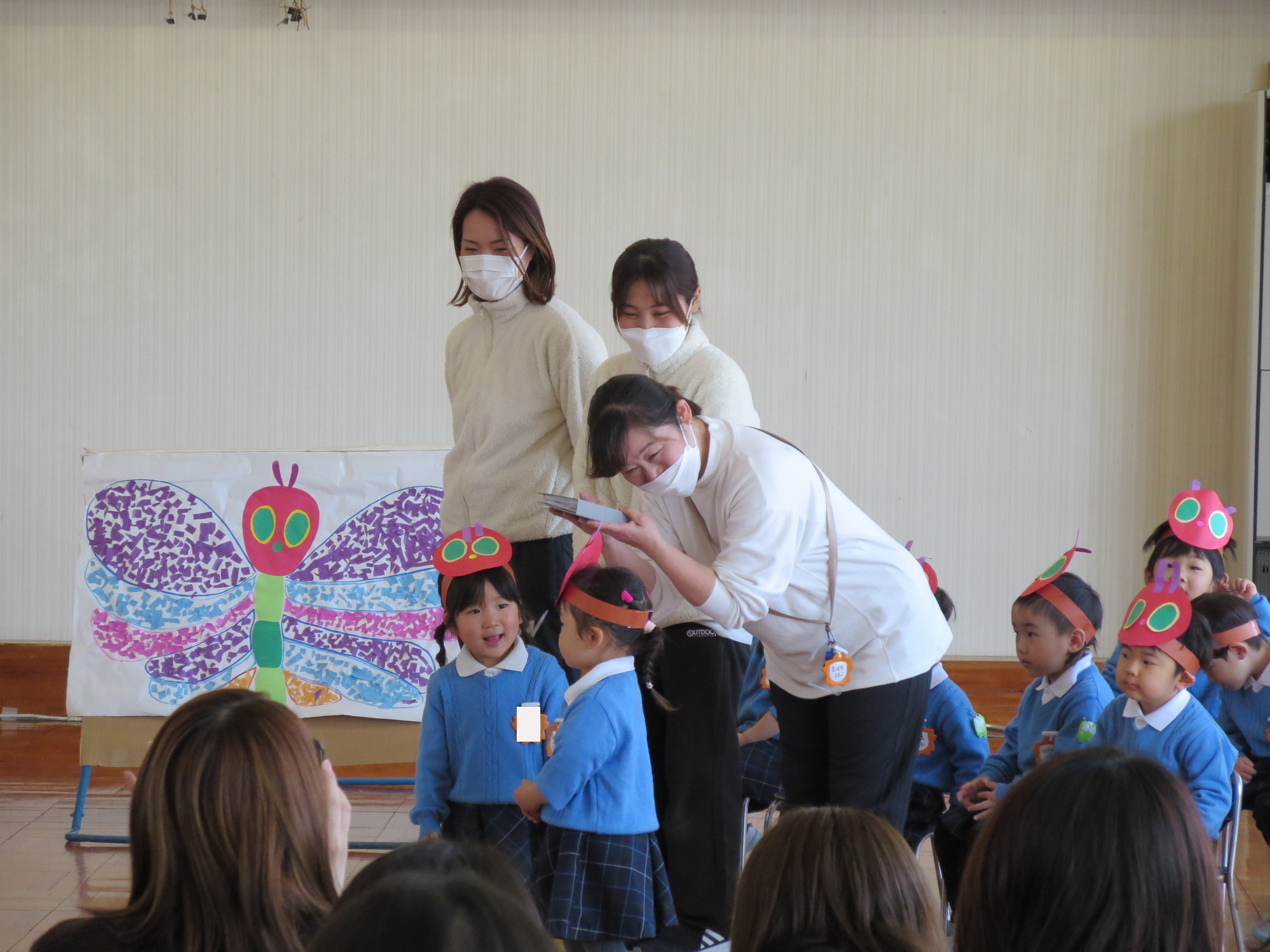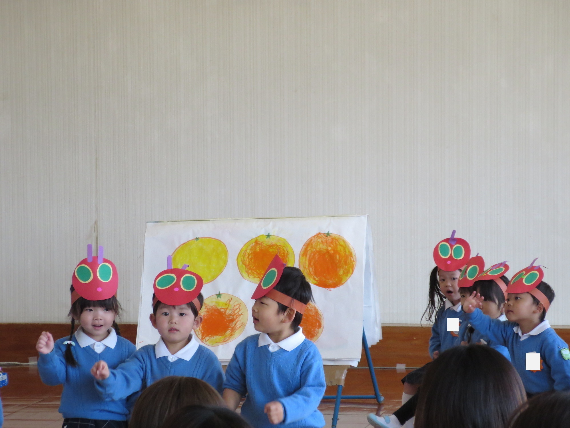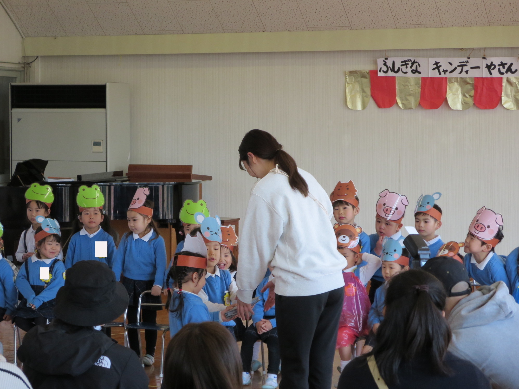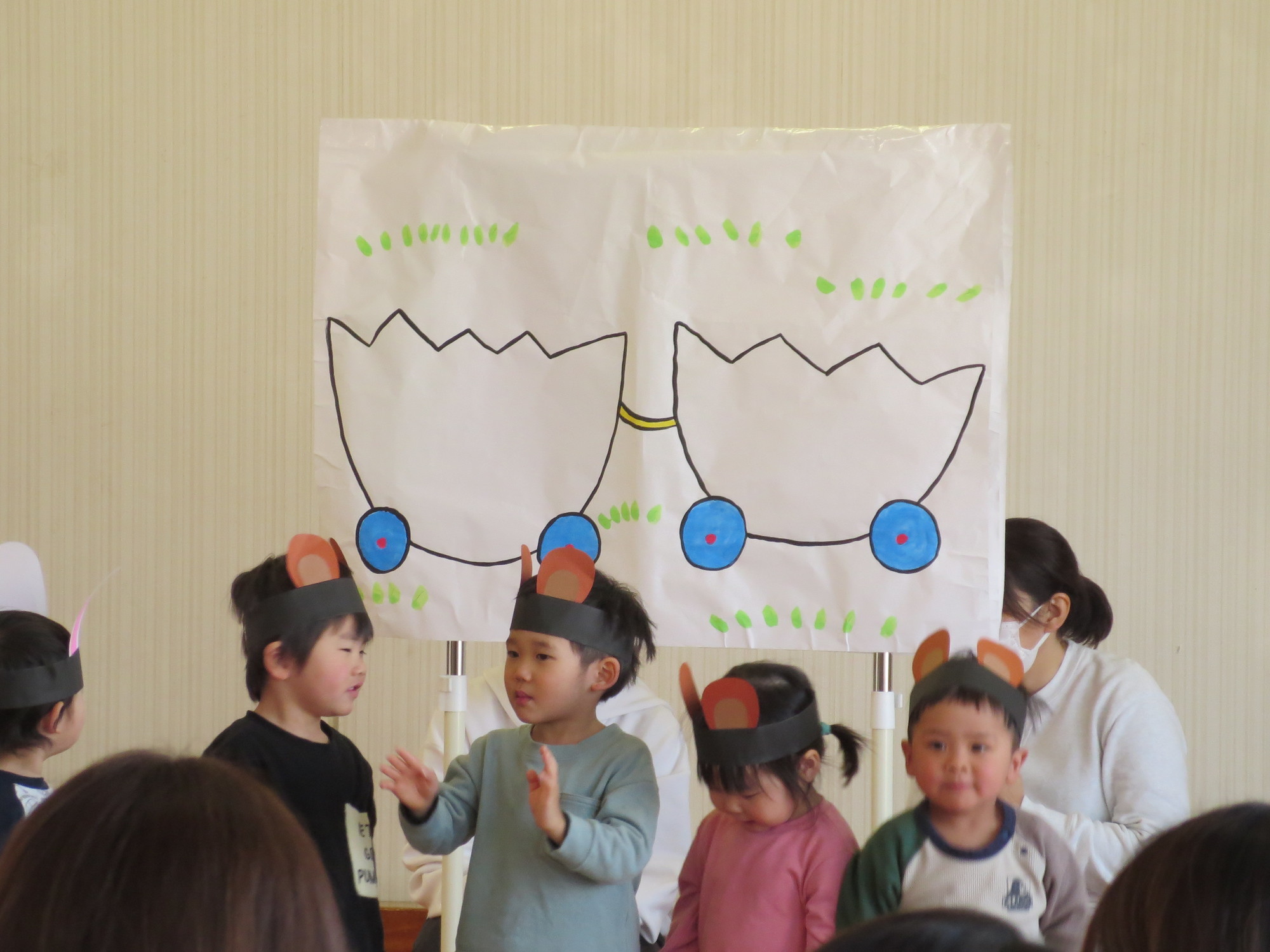 つぼみさんもかわいい飾りをつけて、しっかり声を出し、物おじせずうたも歌えていました。