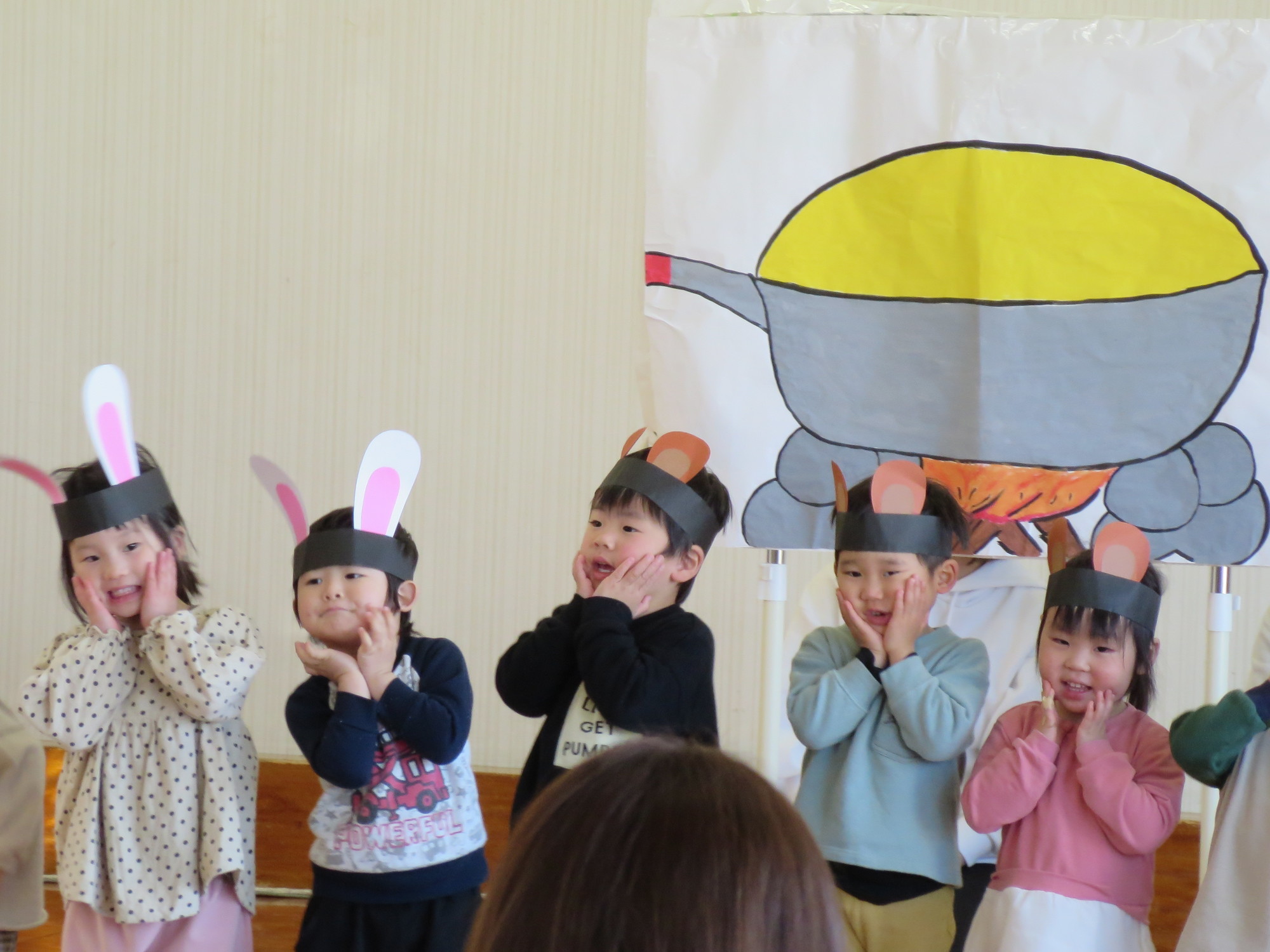 年中さんは、1人でセリフを言って演じるところがたくさんあります。
