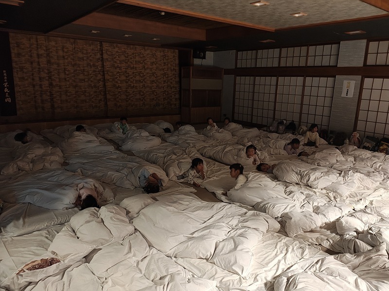 「ねぇ、みんなで寝るの、なんだか楽しいね!」と笑顔でおしゃべりする姿も見られました。
