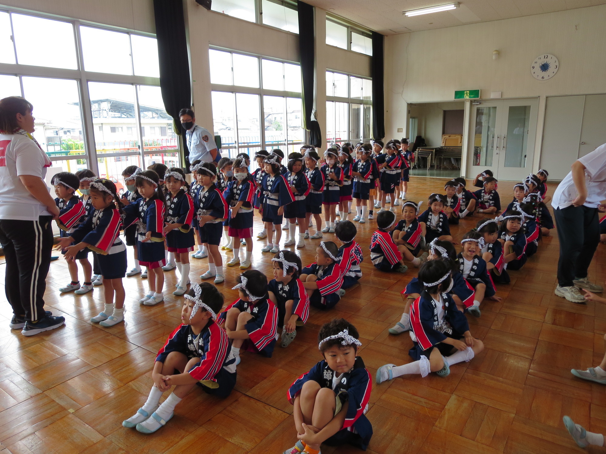 子どもたちははっぴ姿に腰ひもを結び、ねじりはちまきで、きりりとしたいでたちです。