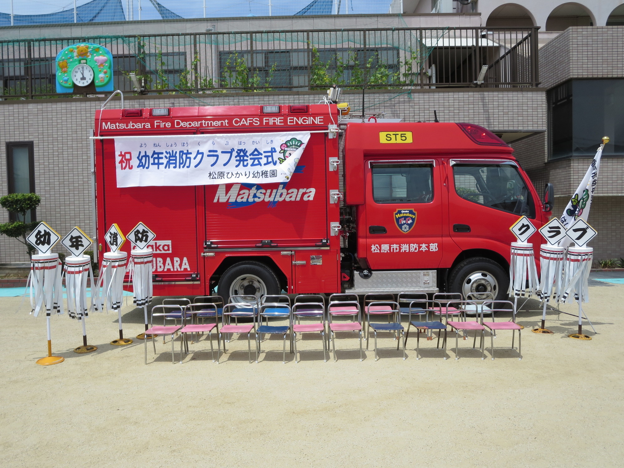「幼年消防クラブの発会式」で、年長の皆さんが今年1年
