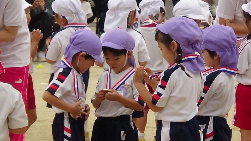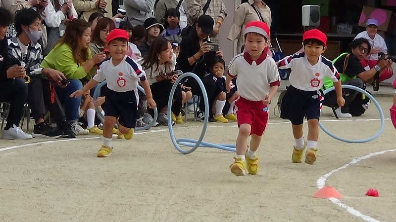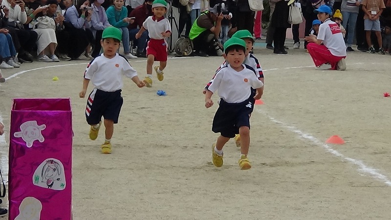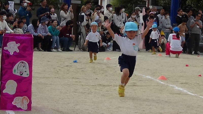 かけっこも顔つきが真剣、思いっきり走って誰よりも早くゴールする、という意識がみんなに出てきました。