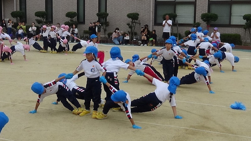 そして、組体。何とスピード感のある組体だったことか、こんなに早く動いて形を作れるものか・・・この年代の子どもたちのなせる業は素晴らしいと感心せずにはおれません。カメラマンさんも右往左往。