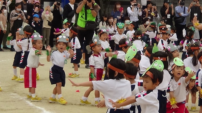 年長さんは、幼稚園最後の運動会。子どもたちの頑張る気力と保護者の皆様の応援が相まって、力を出し切ってくれました。