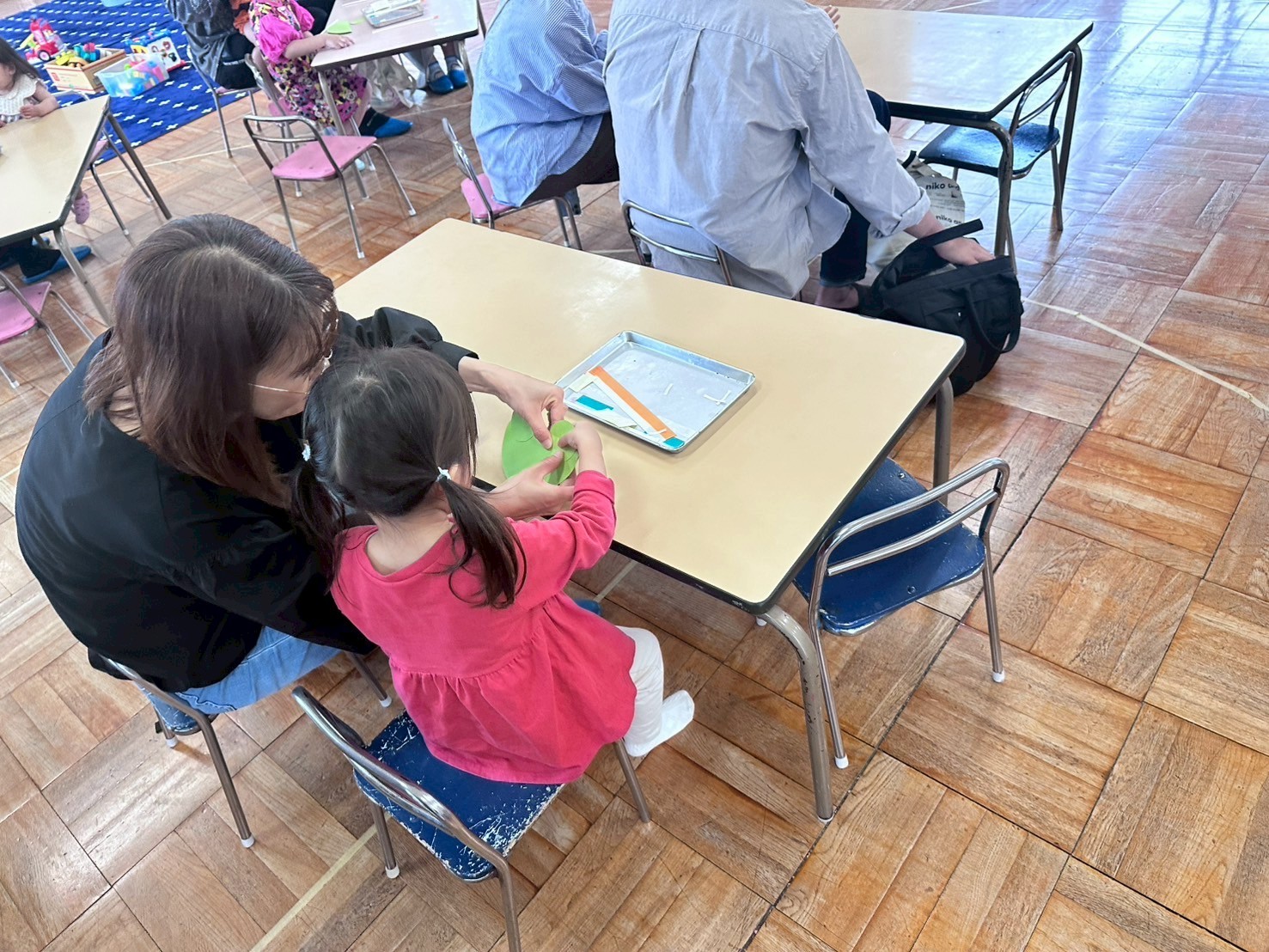 メインの製作ではかえるのおもちゃを作りました。どんなの作るのかな~と説明をきいて作りたいと嬉しそうに言ってくれてました。みんな集中して作ってくれましたよ。