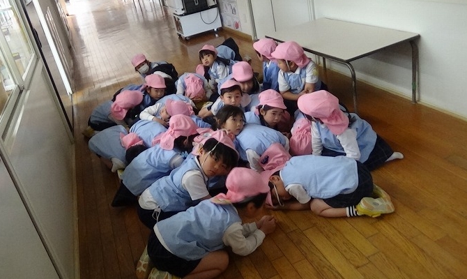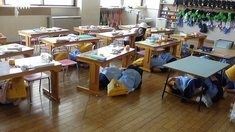 このような事態には絶対に陥ってほしくはありませんが、万が一のために、年に1回「Jアラート」の練習を行っています。