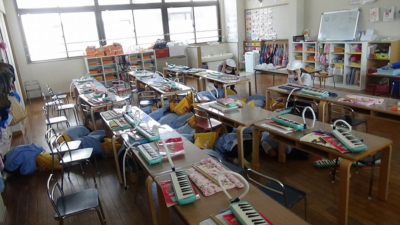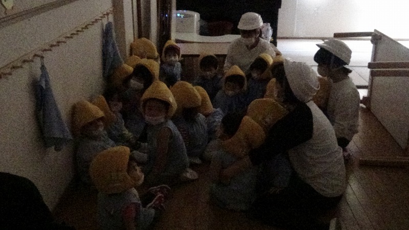 その放送を確認して、園でも避難訓練が始まりました。
