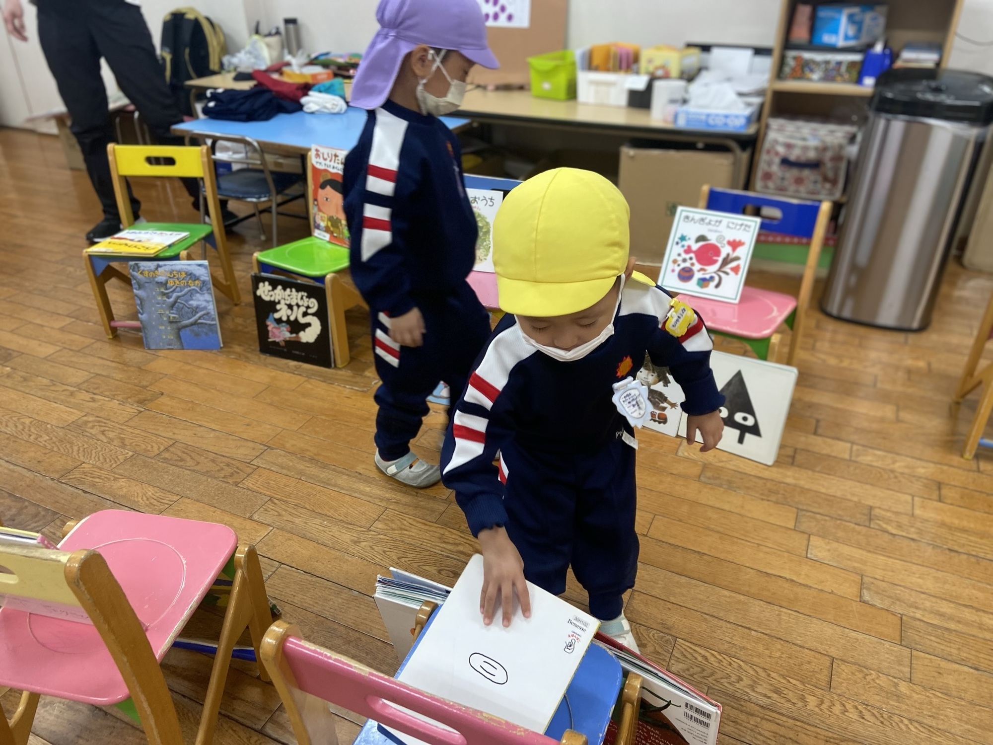 椅子に座って読むお友だちもいれば、、、
