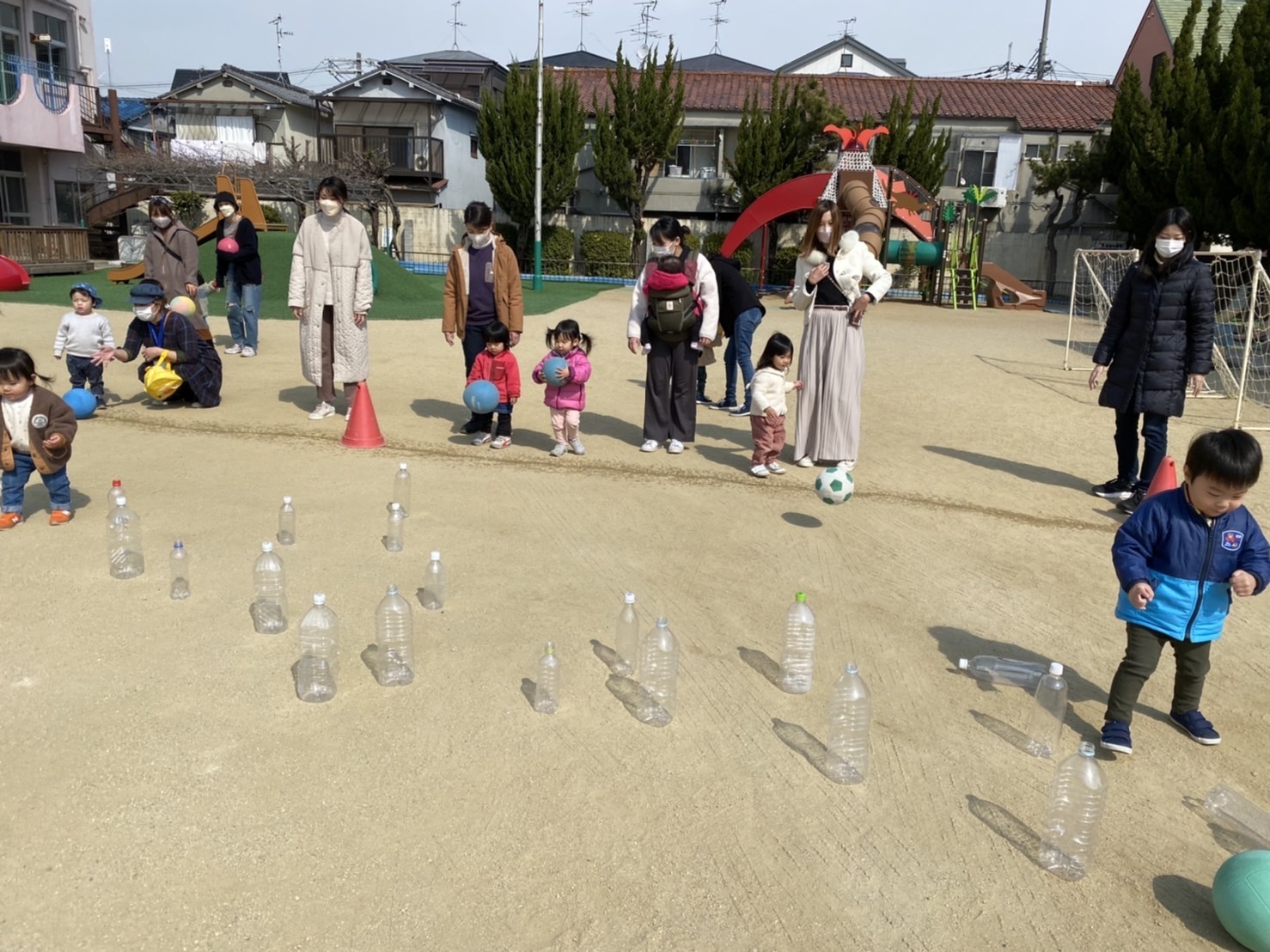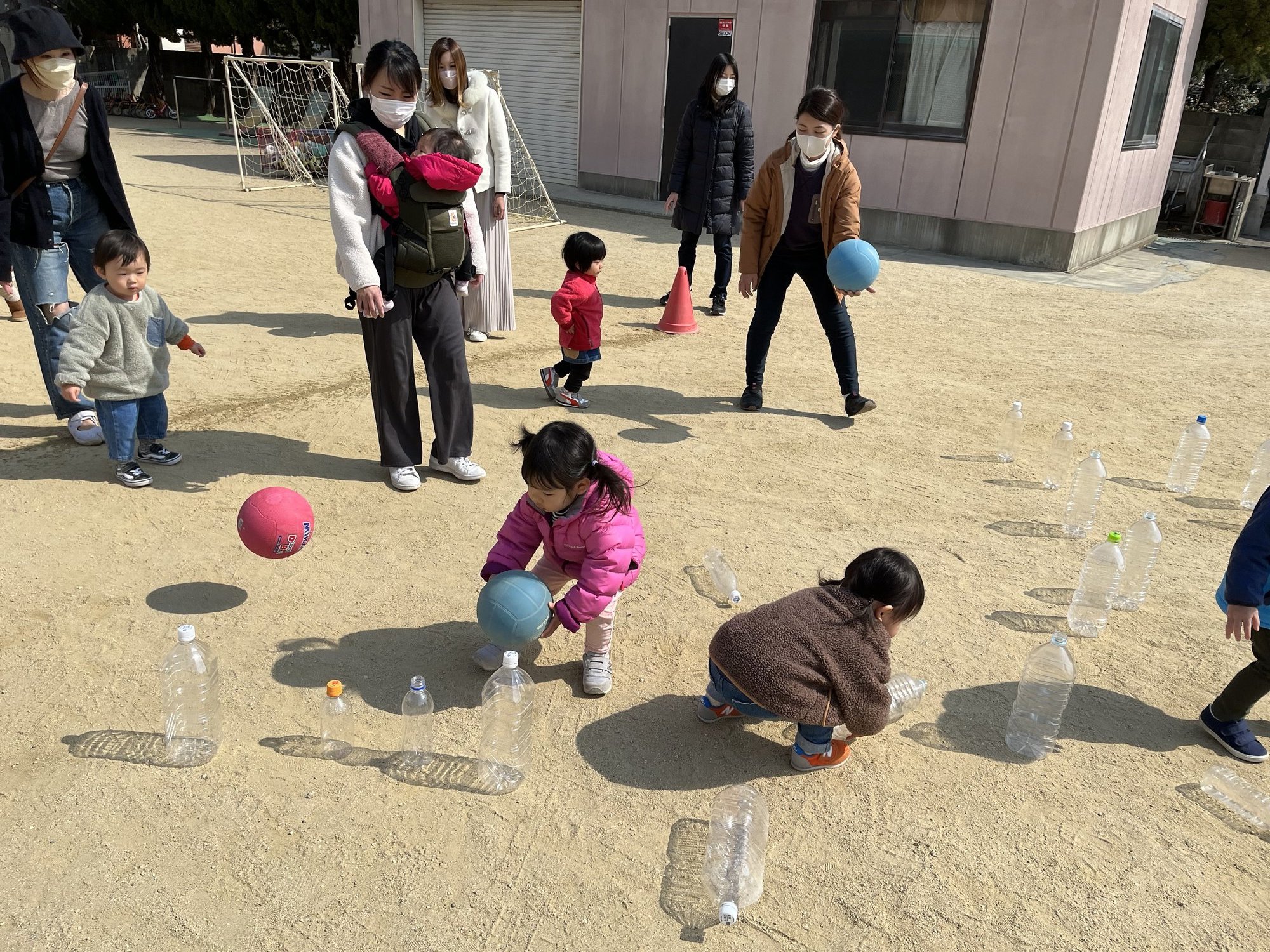 コロコロ転がして、ペットボトルを倒す、ボーリング遊びも楽しかったね。