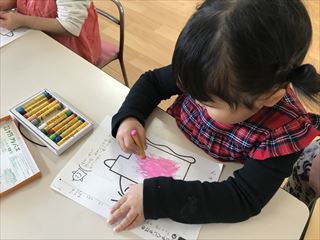 2歳児クラスは、折り紙でお雛様・お内裏様の体をつくり、貼りつけて行きました☆
