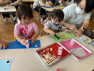 その後は、スタンピングで鯉のぼりを作っていきました。