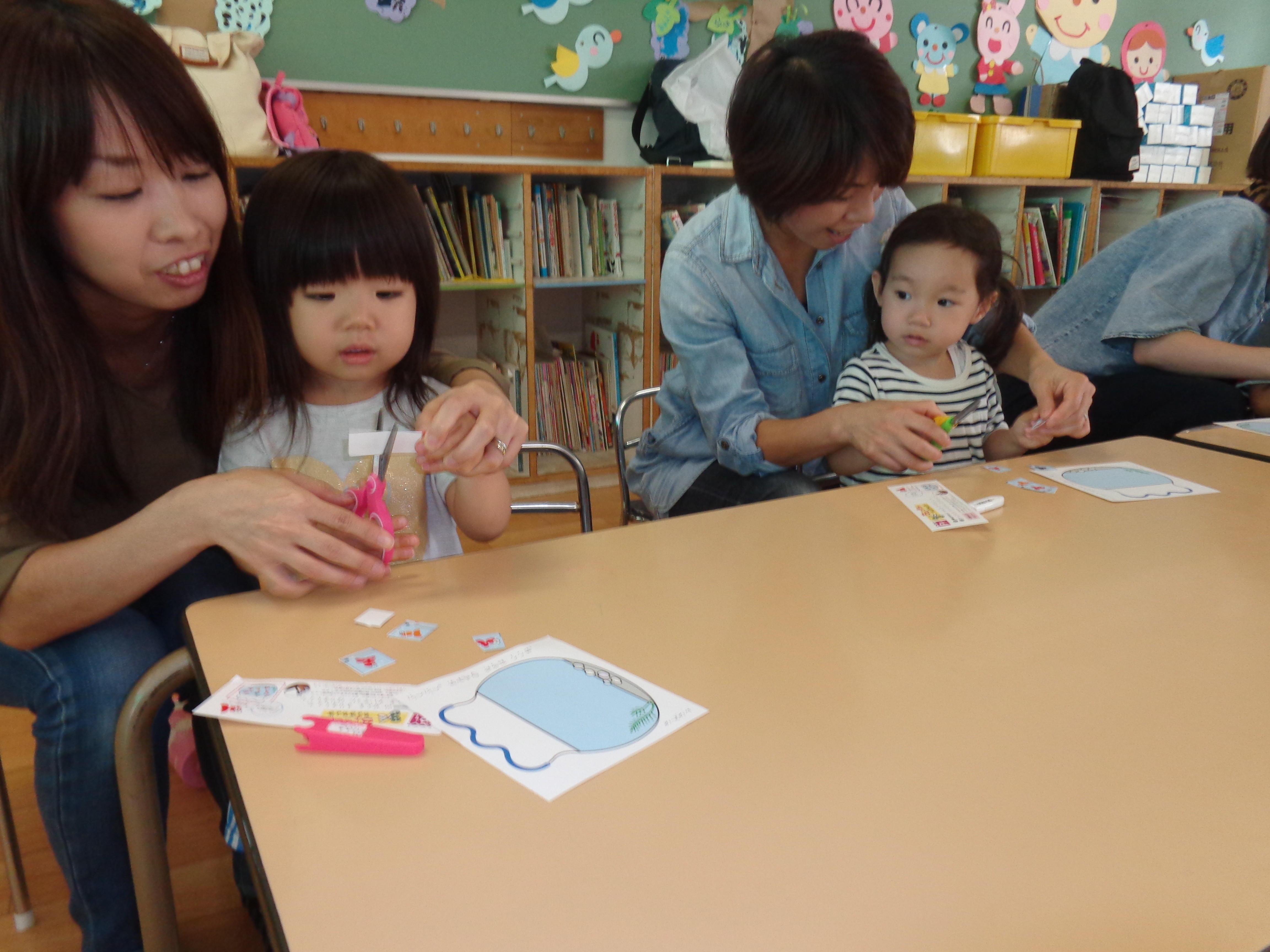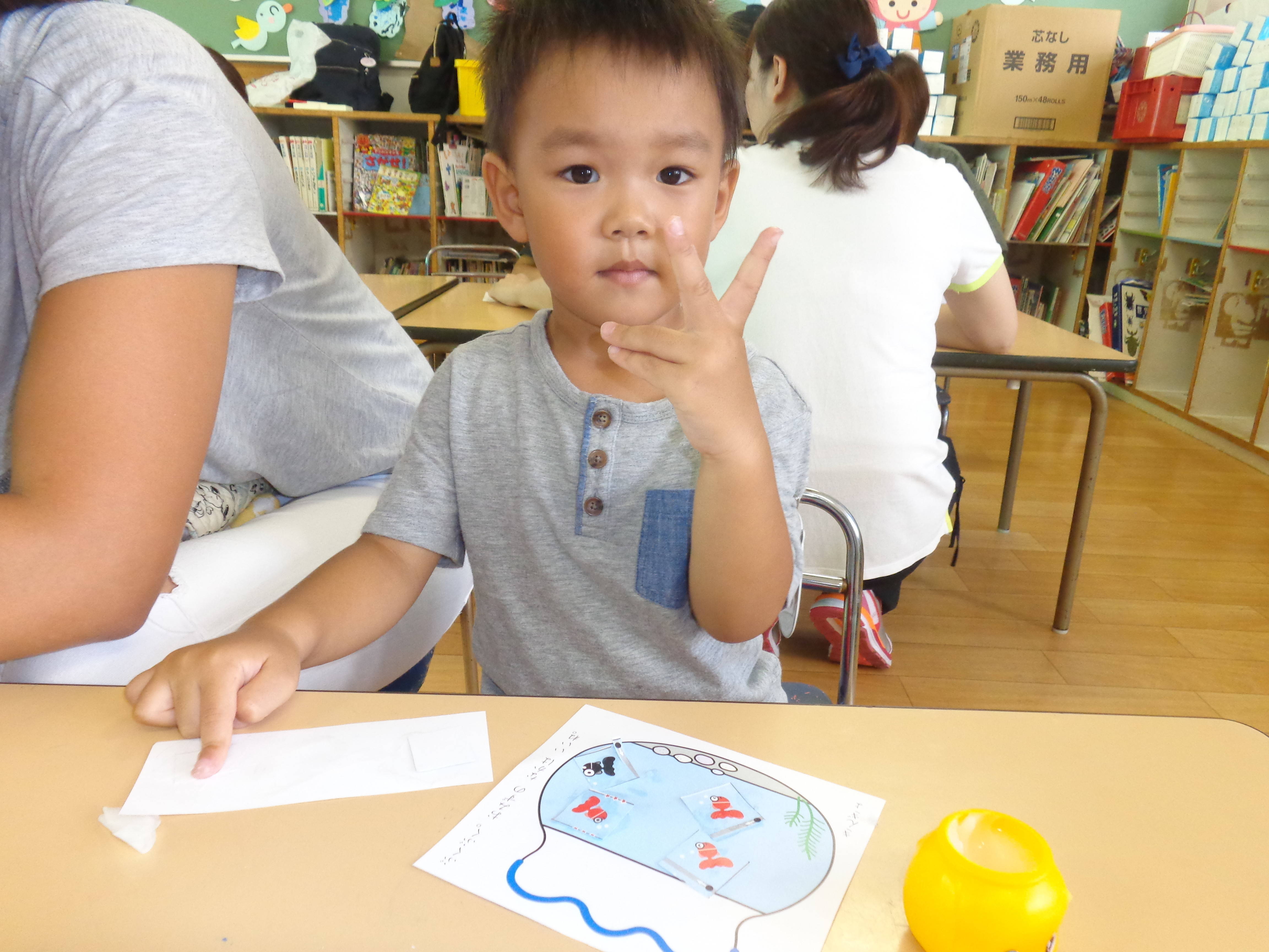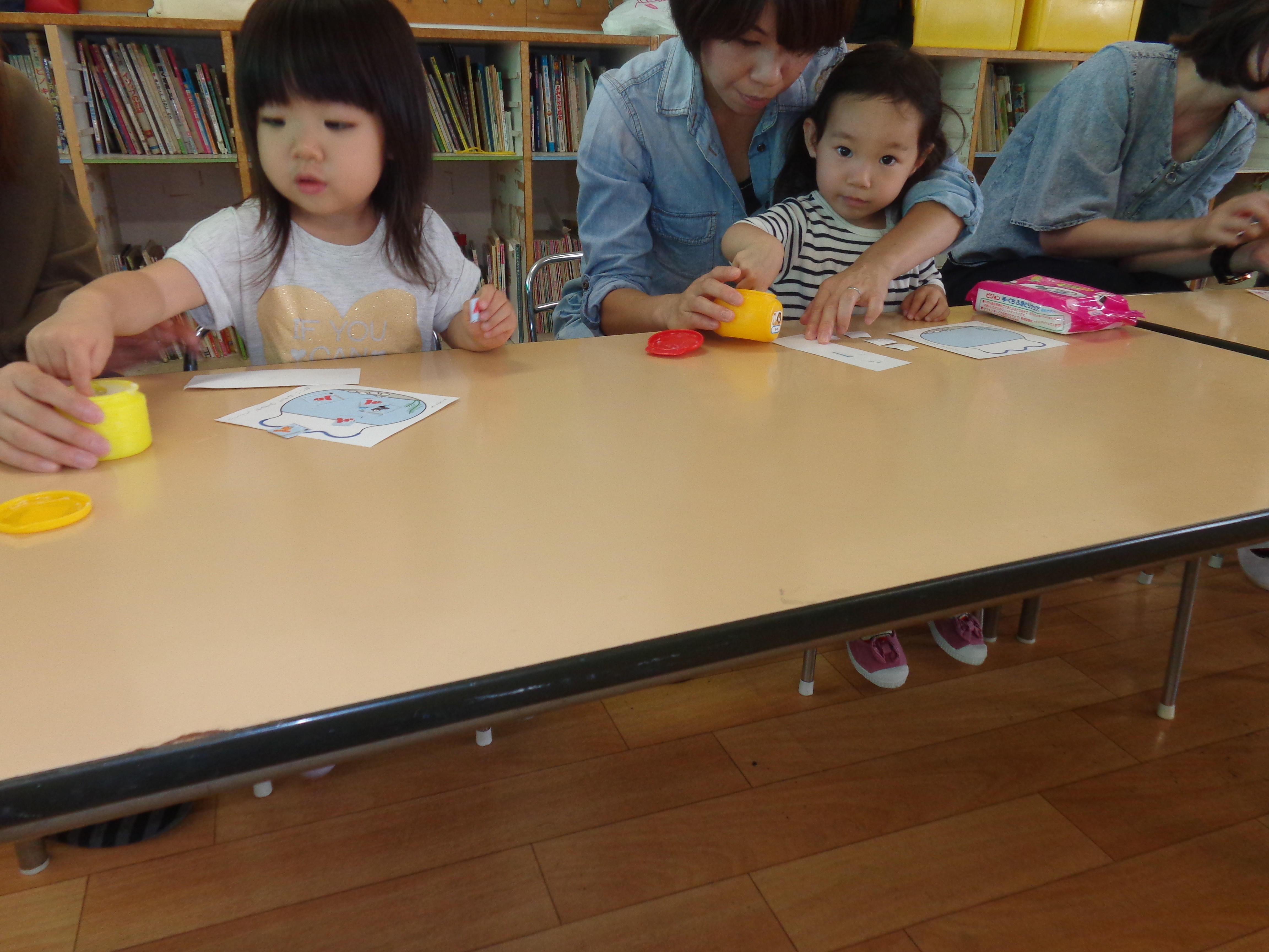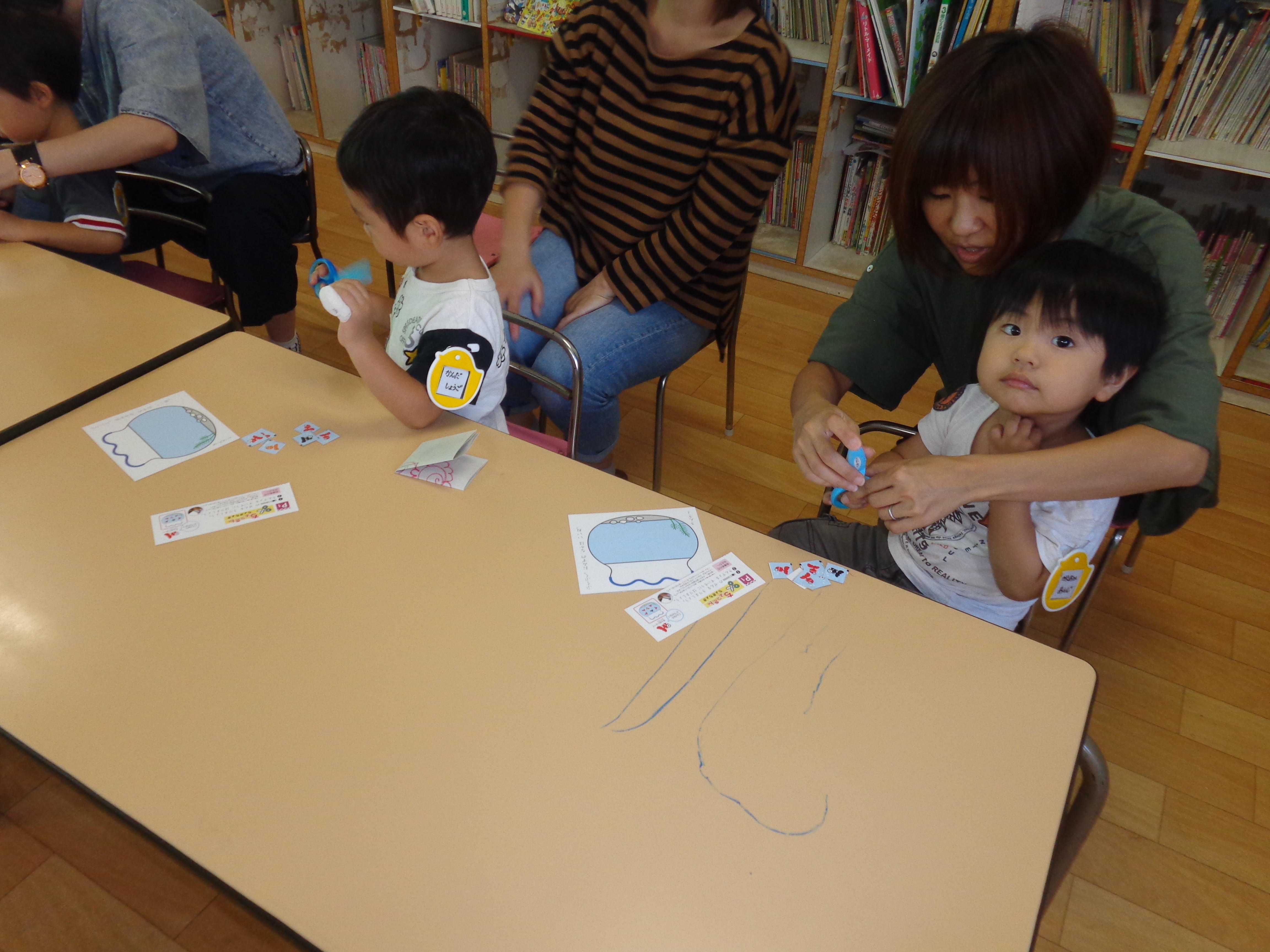 今日は、はさみを使って金魚を水槽にいれていく教材をしましたよ☆