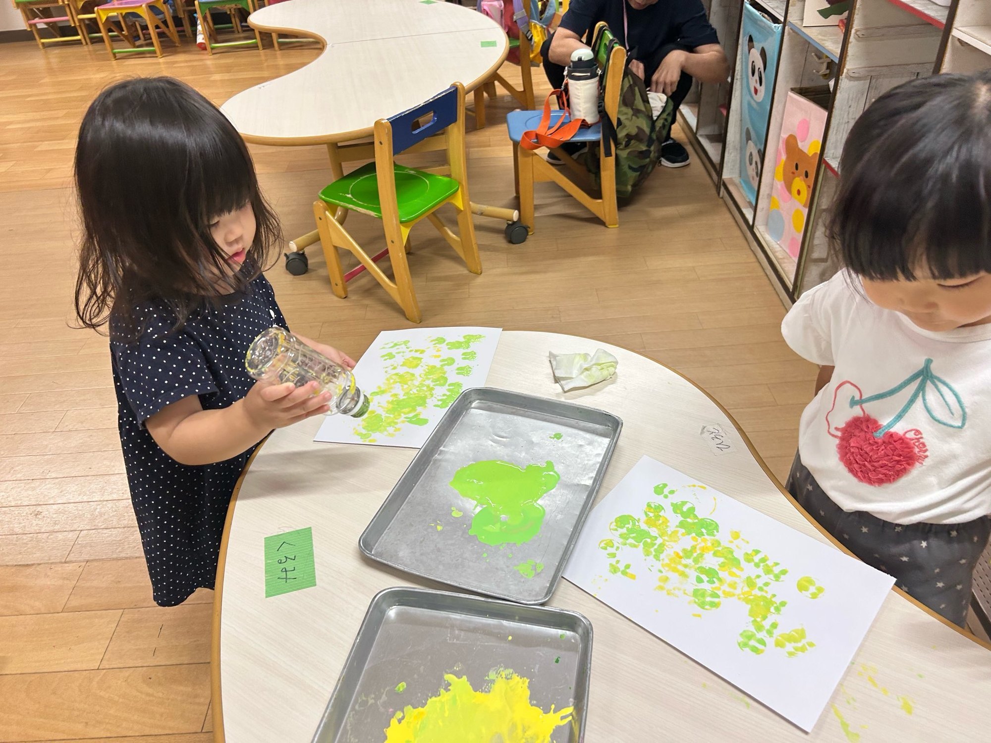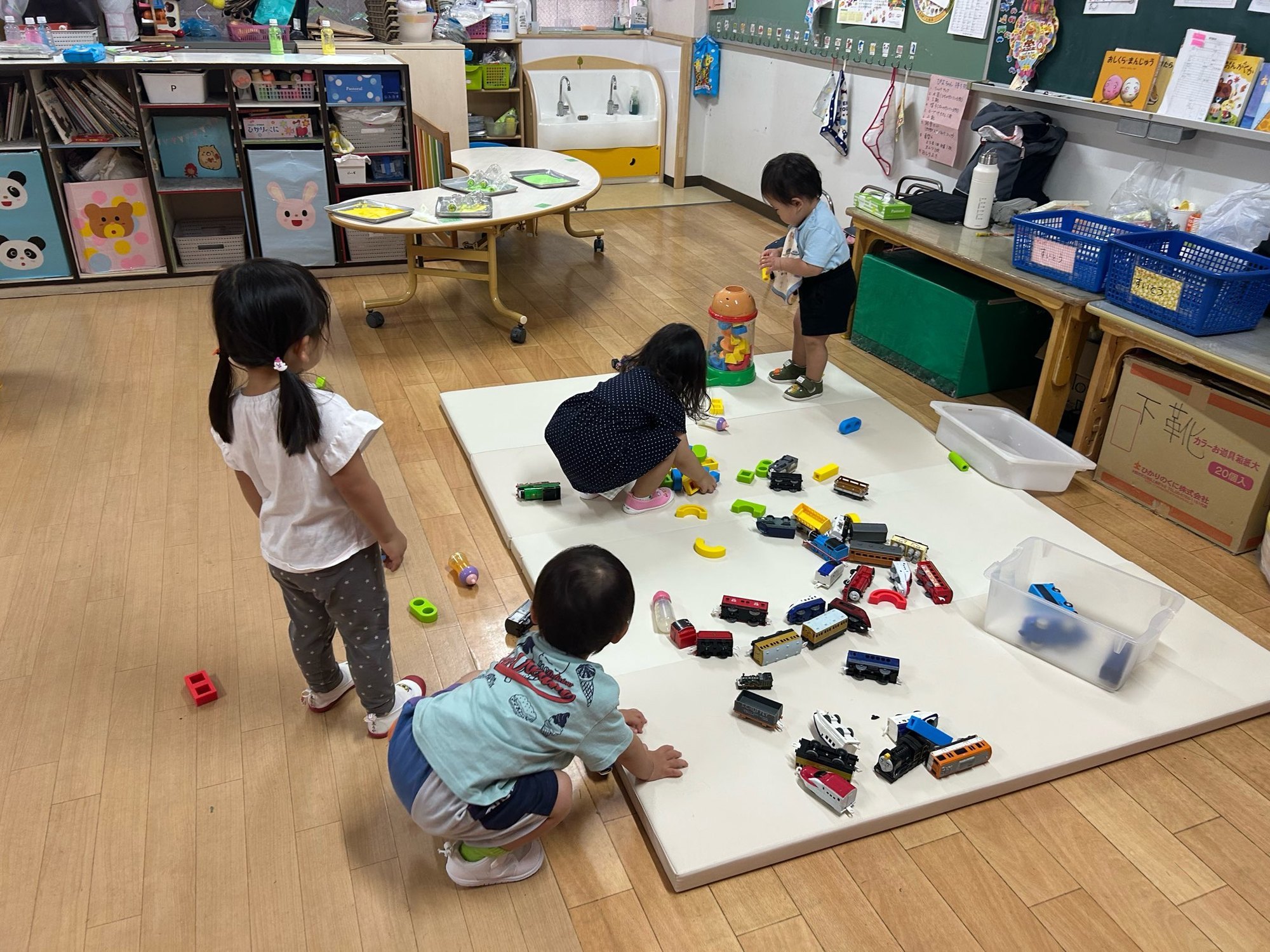 泣いてしまう子、涙から少しずつ遊びに気持ちが向かう子、最初からご機嫌で過ごせる子…。それぞれの姿がありました。